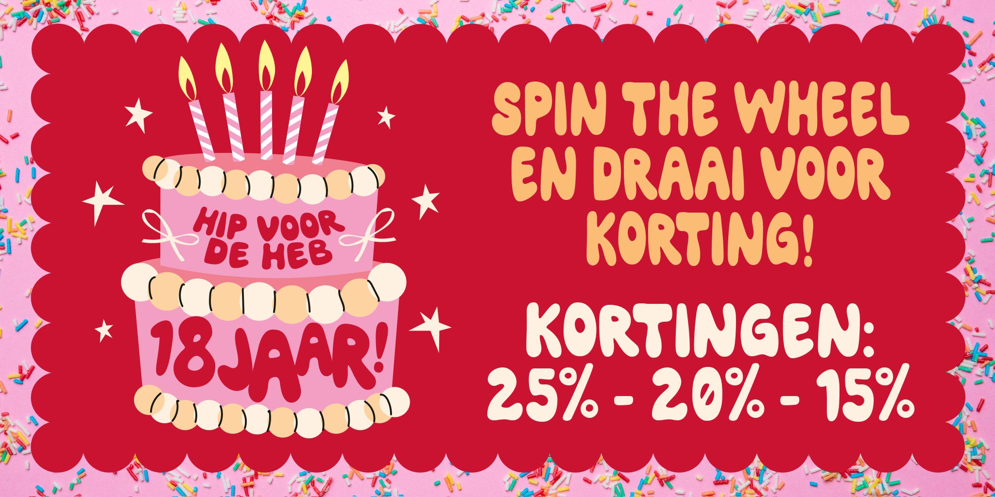 En dat vieren we met jou! Klik op het cadeau icoontje en draai voor kortingen tot 25% - good luck!