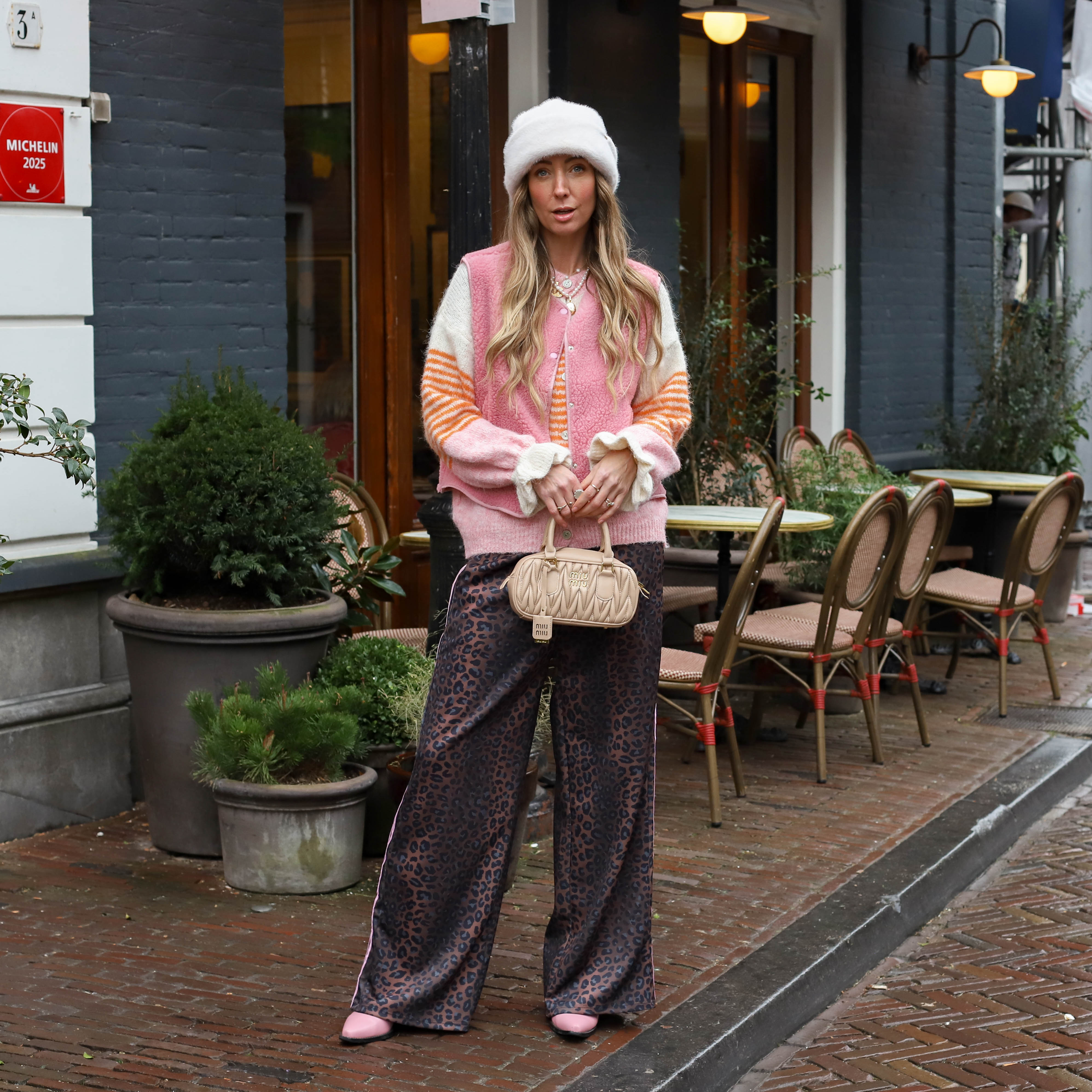 Vest Lexi Lou streep ecru roze
