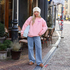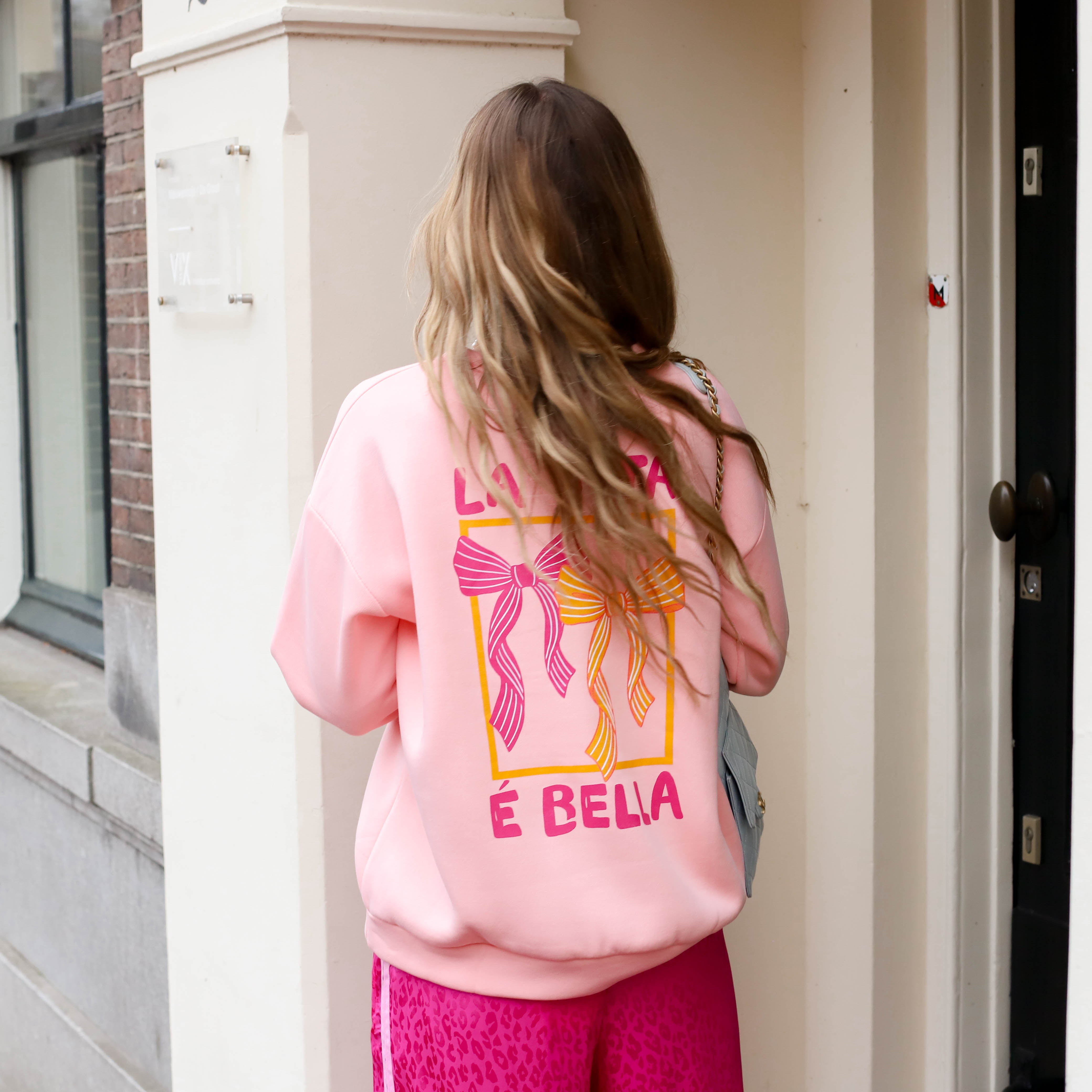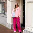 De Bow Sweatshirtis de ultieme mix van sportief en girly. Deze trui heeft een heerlijke baggy fit en verlaagde schouders, waardoor hij perfect valt voor een nonchalante, oversized look. De roze basis wordt gecombineerd met een opvallende roze strik-opdruk, wat dit item een super trendy en vrouwelijke touch geeft.