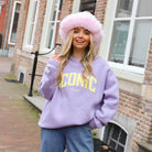 Dit Iconic Club Sweatshirt is een gedurfde en trendy sweater die direct een statement maakt in je garderobe. De lila kleur wordt gecombineerd met een opvallende, gele"ICONIC" applicatie in een zachte badstof-structuur, met daaronder subtiel de tekst "CLUB" geborduurd.