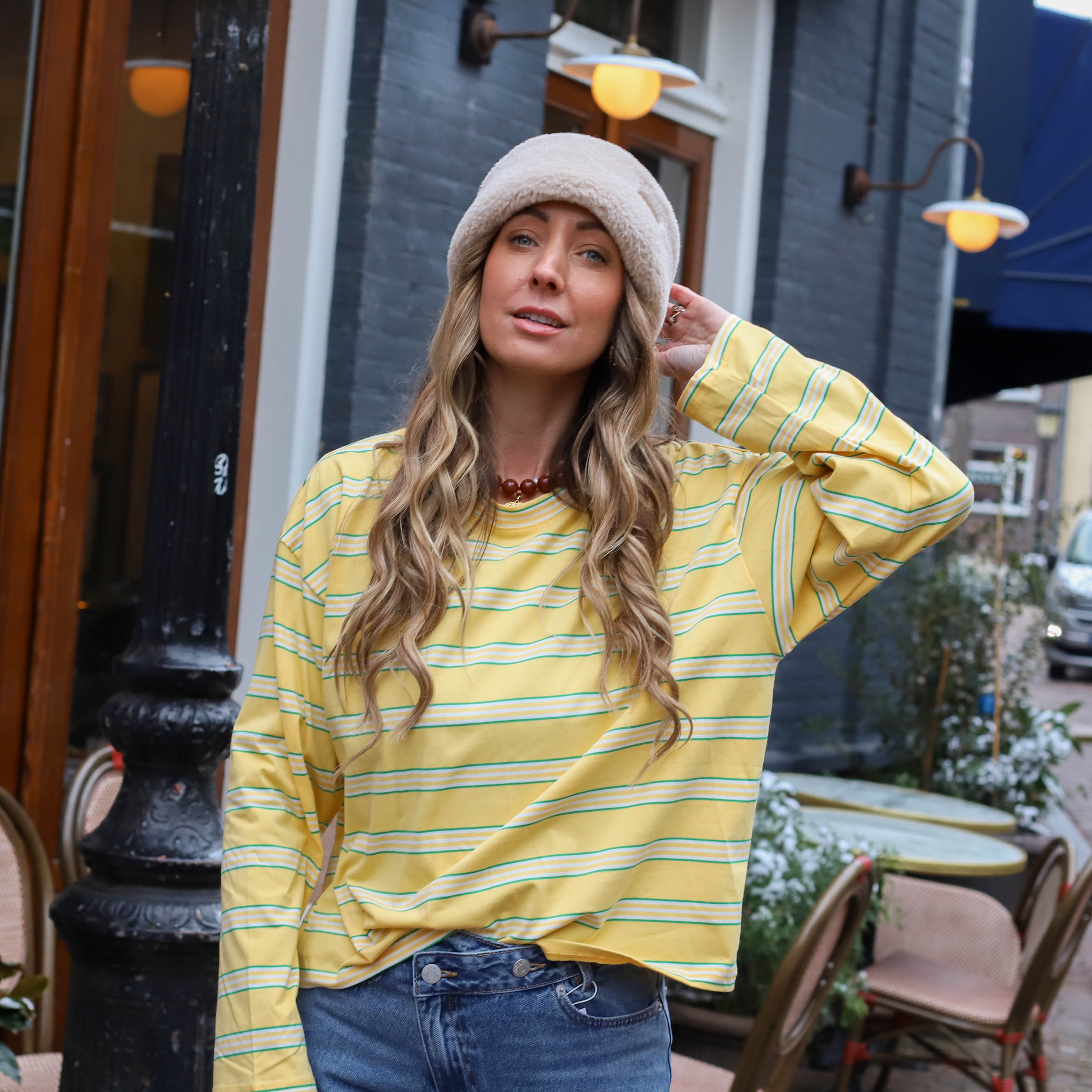 Deze Olivia Longsleeve Top is de perfecte frisse basic voor je kledingkast. De top heeft een baggy fit met verlaagde schoudernaden, wat zorgt voor een relaxte en on-trend look. Dankzij het vrolijke geel-groene streeppatroon en de comfortabele stretchstof is dit item ideaal voor een fashionable dagelijkse outfit.