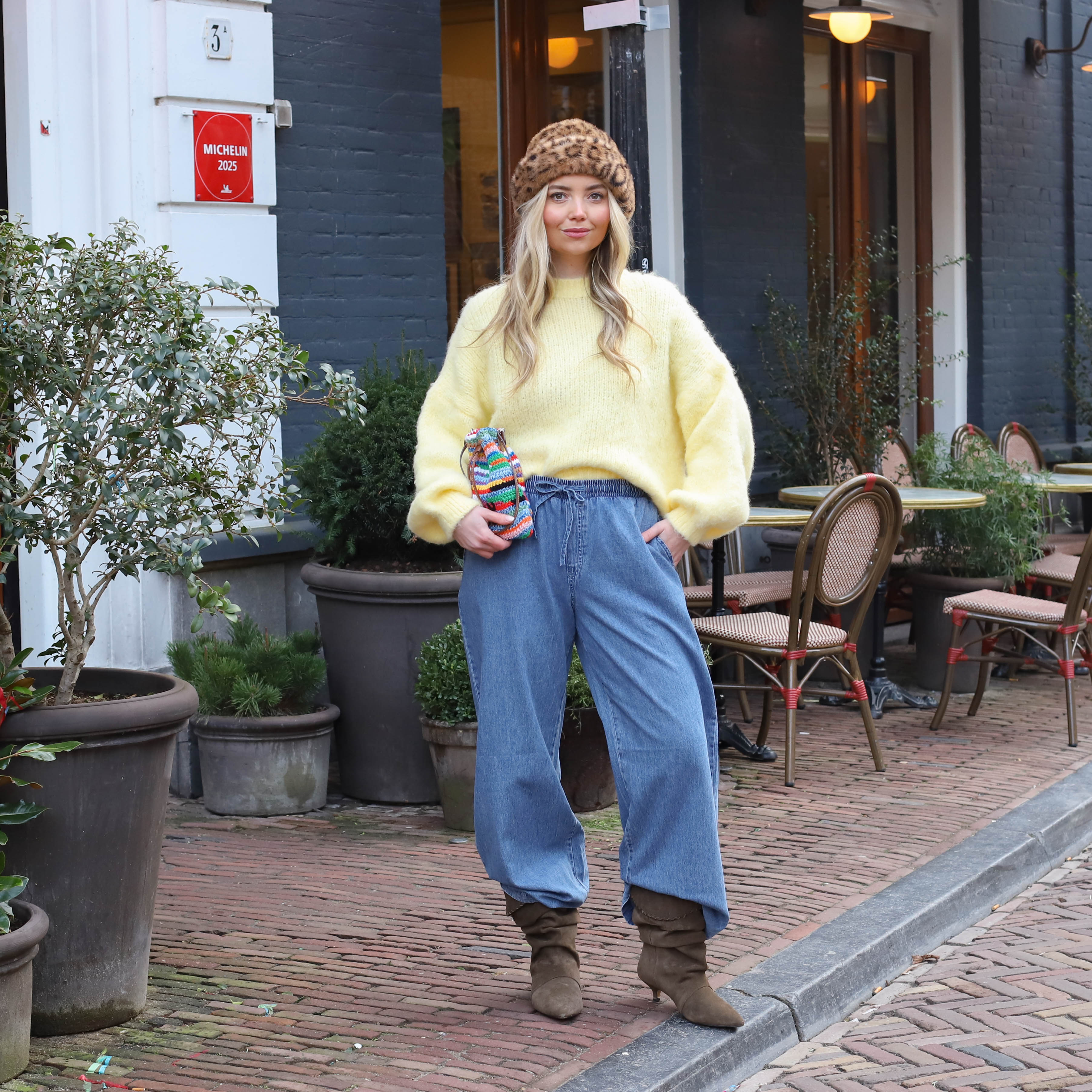 Deze Fuchsia Mohair-Look Trui is een levendige en comfortabele toevoeging aan je garderobe, perfect om kleur te geven aan grijze dagen. De trui valt direct op door zijn opvallende gele tint en de heerlijk zachte, harige textuur die zorgt voor een warme en luxe uitstraling. Met een klassieke ronde hals en een ontspannen pasvorm is dit het ideale item om zowel casual te dragen op een jeans als chic te stylen over een rok of jurk.