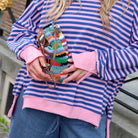 Deze Oversized Streep Sweater is een heerlijke, baggy toevoeging aan je collectie voor een moeiteloos coole look. Het item valt direct op door het speelse streeppatroon en de unieke, gelaagde details bij de mouwen en de zoom. Met zijn extra ruime pasvorm, verlaagde schoudernaden en comfortabele elastische boorden is dit de ultieme trui om in weg te kruipen. Dankzij de fijne katoenmix met een vleugje stretch draagt hij niet alleen stijlvol, maar ook ontzettend fijn.