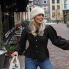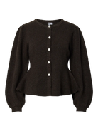 Deze PC Silly LS Puff Knit Cardigan is een vrouwelijk en verfijnd kledingstuk dat zachtheid combineert met een trendy silhouet. Het vest is uitgevoerd in een zwarte kleur en heeft een fijngebreide textuur. Het ontwerp is voorzien van elegante pofmouwen bij de schouders, een klassieke ronde hals en een knoopsluiting aan de voorzijde, wat zorgt voor een charmante en stijlvolle uitstraling.