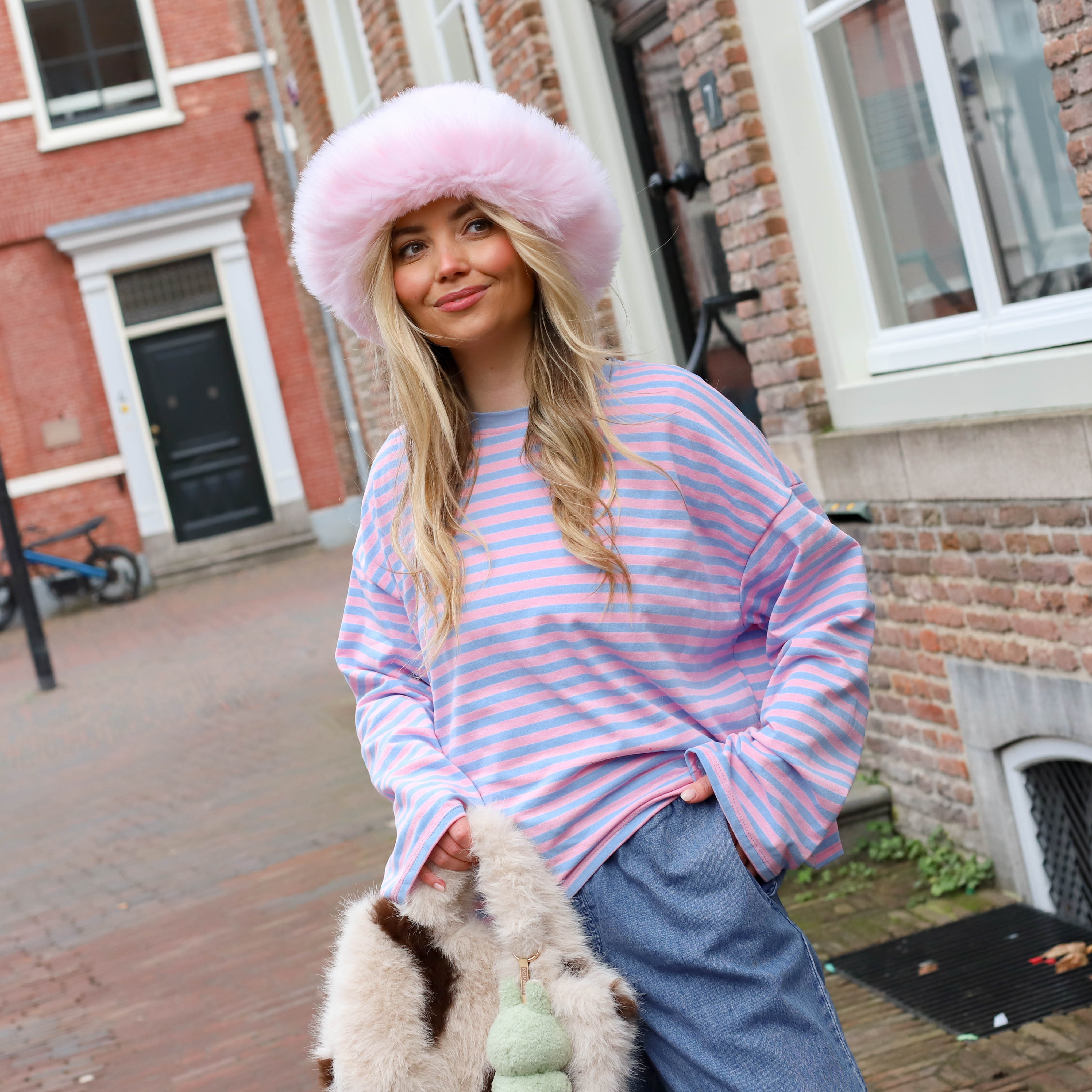 De top heeft een ruime, oversized pasvorm, een ronde hals en lange mouwen.