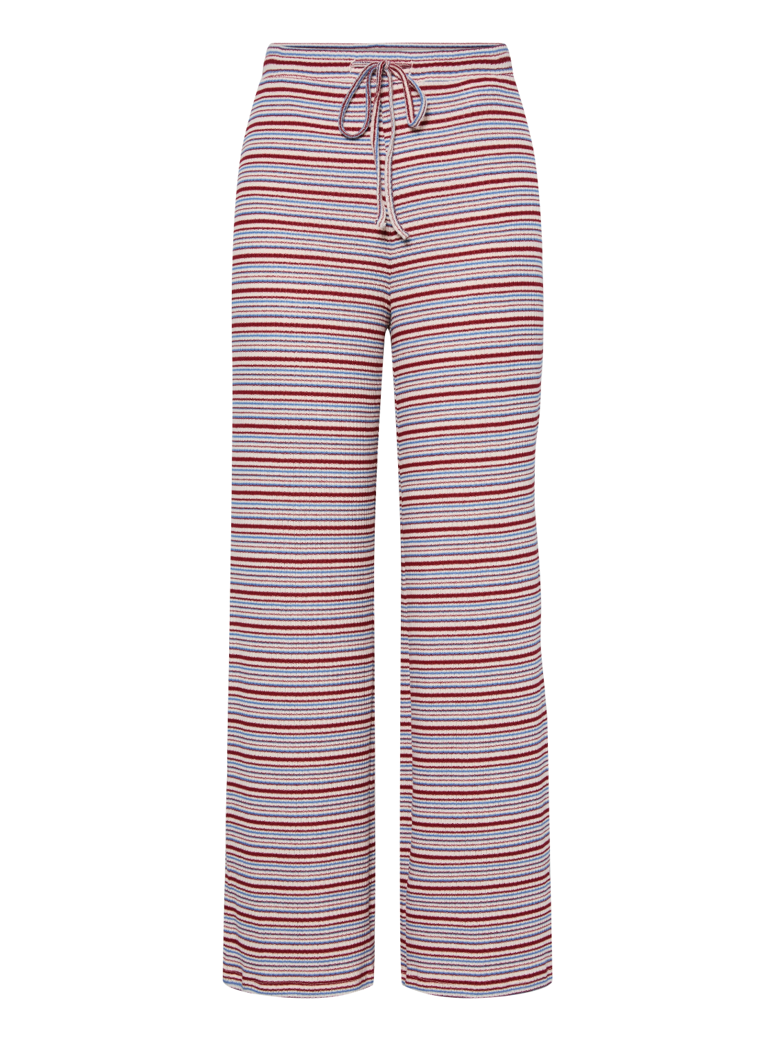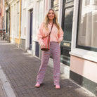 Deze gestreepte broek is een trendy en comfortabele toevoeging aan je garderobe. De PCTONI HW PANTS JRS heeft wijde pijpen, een hoge taille en een strikceintuur, wat zorgt voor een relaxte en stijlvolle look.