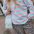 De Longsleeve Streep Roze Blauw is een vrolijke en comfortabele toevoeging aan je dagelijkse rotatie. Dit shirt met brede banen in pastelroze en helderblauw heeft een relaxte pasvorm met verlaagde schoudernaden voor een nonchalante look. Gemaakt van een zachte katoenmix met stretch, is dit de ideale top voor een frisse lentedag.