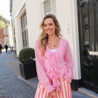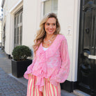 Deze elegante witte top is een must-have voor je garderobe. De top heeft een flatterende pasvorm met een tailleband die je kunt accentueren met de strikdetail. De subtiele pofmouwen en de verfijnde plooien aan de onderkant geven de top een chique uitstraling. Gemaakt van 100% katoen voor een comfortabel gevoel. Perfect om zowel casual als gekleed te dragen!