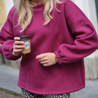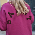 Geef je outfit een comfortabele en stoere twist met deze leuke sweater. Deze sweater heeft een klassieke ronde hals. De sweater heeft een ruime, comfortabele pasvorm en is op de achterkant voorzien van de tekst 'SALUT' in een zacht, bordeaux teddy materiaal.