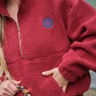 Dit Teddy Jack in een zachte burgundy kleur is de ultieme comfy en warme toevoeging aan je wintergarderobe. Het jack heeft een heerlijke zachte, dikke teddy-textuur die aanvoelt als een warme omhelzing.