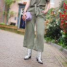 Mooie lange broek in een lichte kleur. De broek is van linnen, ideaal voor als het wat warmer is. Door de elastische tailleband zit hij altijd mooi aangesloten. Maak het af met een leuke top.