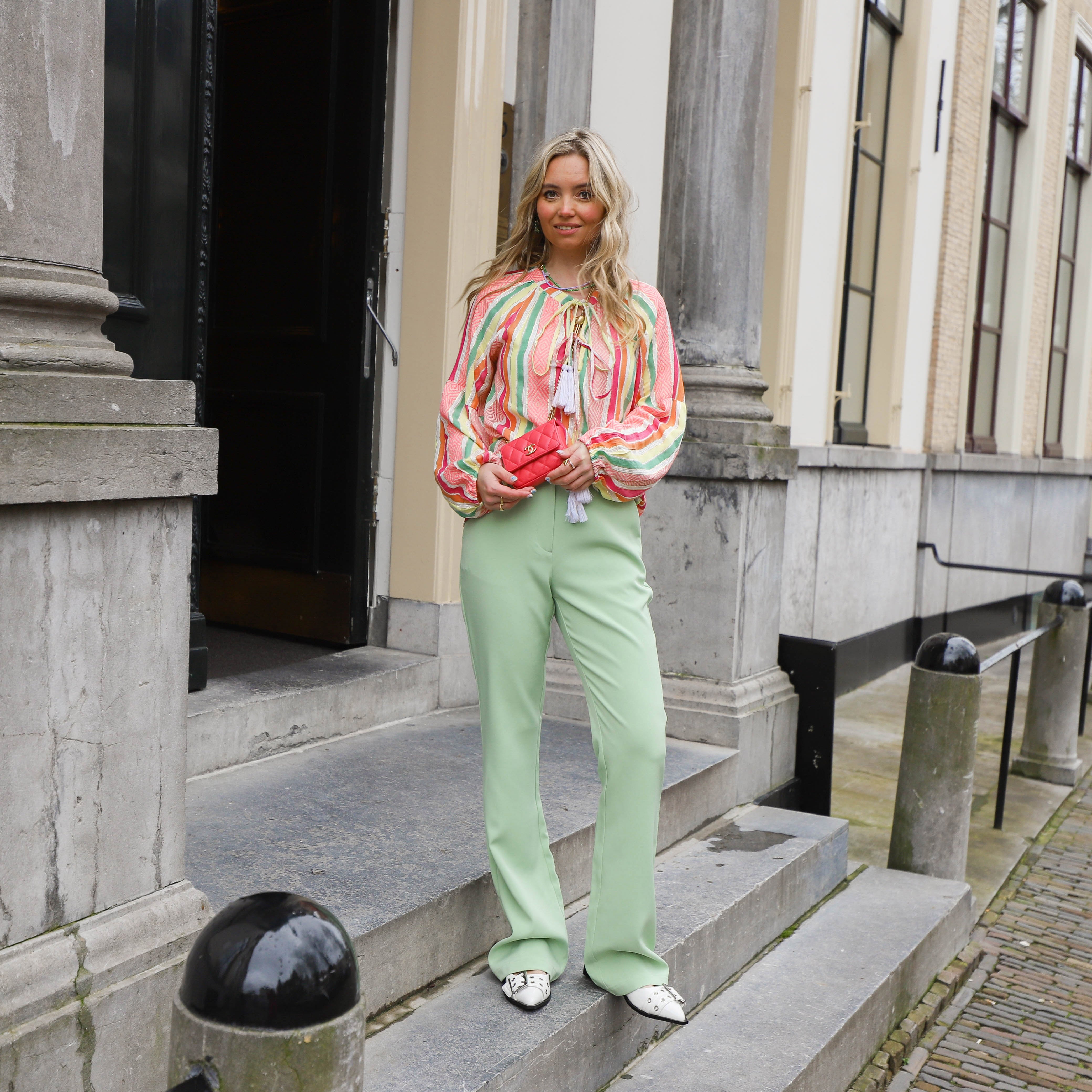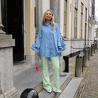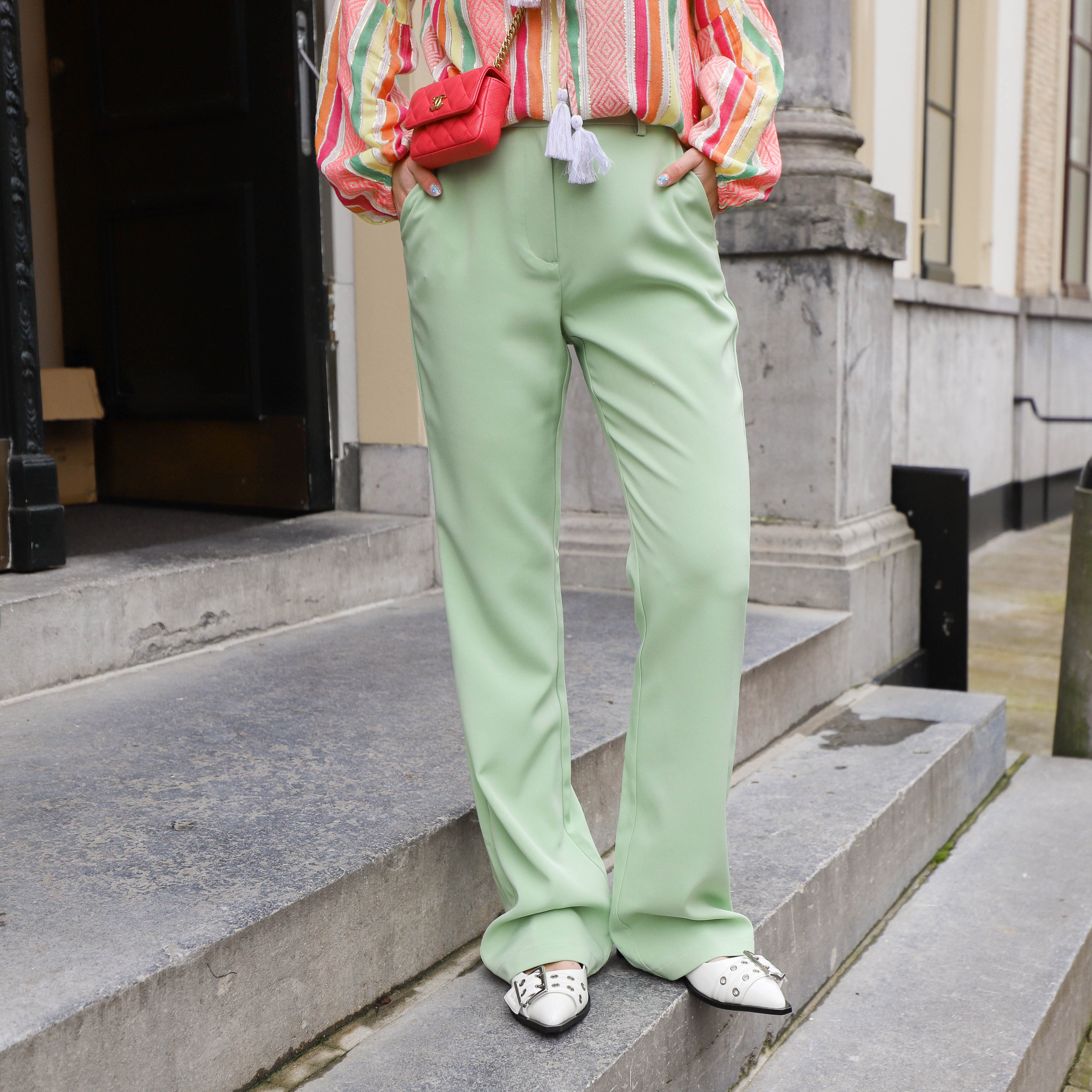 Mooie flared pantalon van YAS. De pantalon heeft een mooie lichtgroene kleur en een hoge taille. Leuk met een blouse of top.