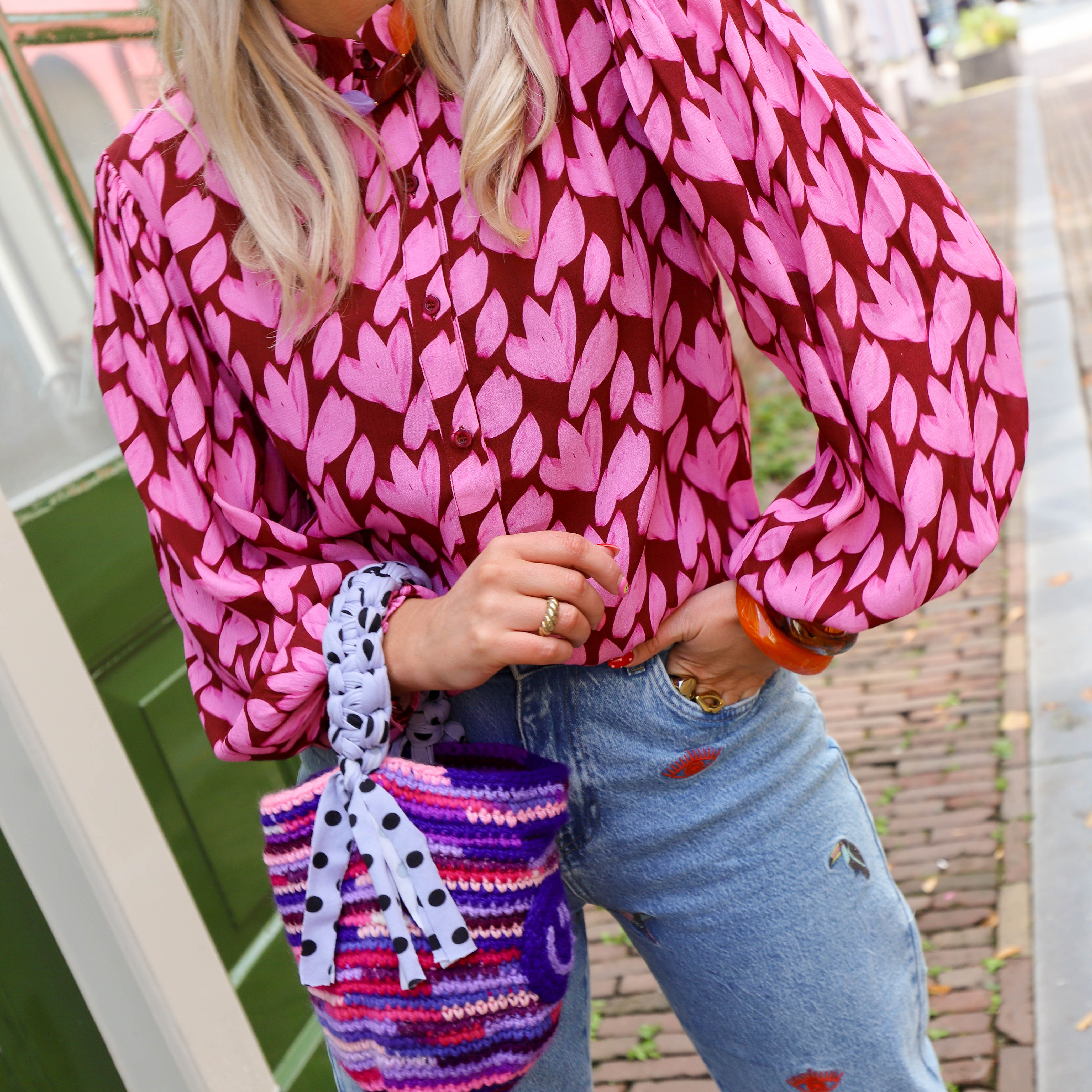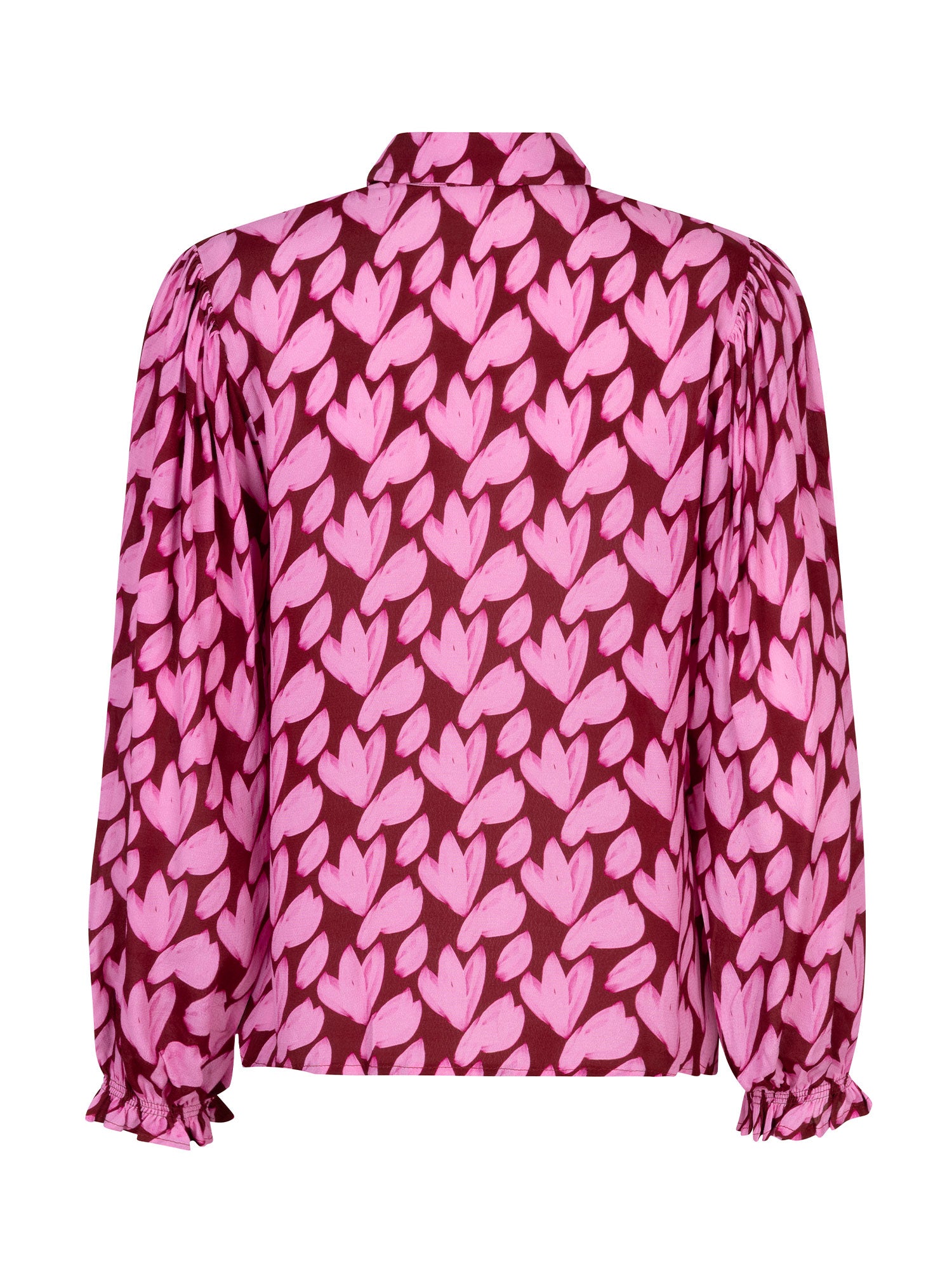 Blouse Alyssa brengt kleur en elegantie samen in één stijlvol item. Deze blouse heeft een losse, comfortabele pasvorm met een doorlopende knoopsluiting aan de voorkant. De lange mouwen zijn licht gepoft en afgewerkt met elastische ruches aan de manchetten, wat zorgt voor een speelse en vrouwelijke touch. De print geeft de blouse een frisse en trendy uitstraling, perfect voor iedere gelegenheid.