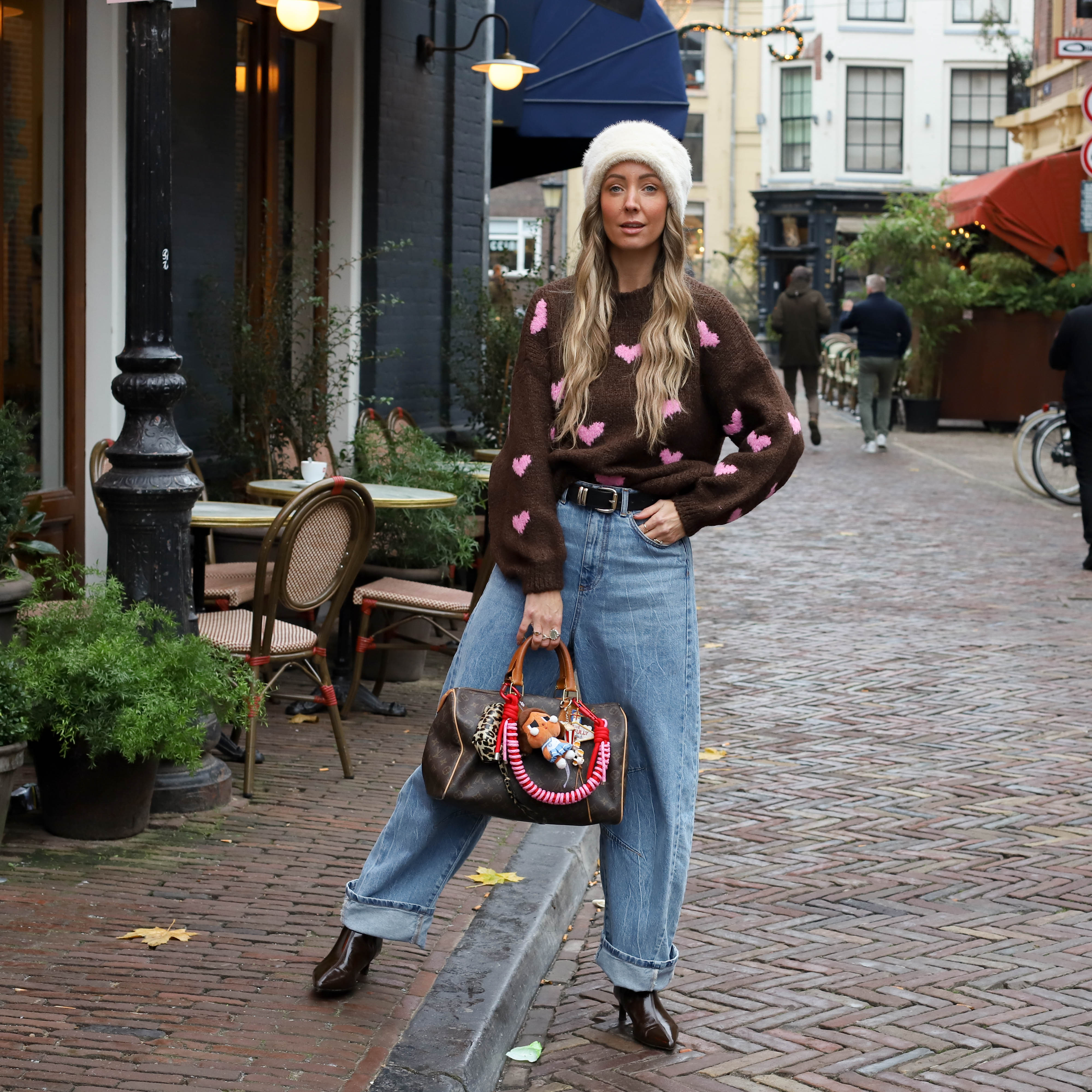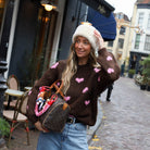 Deze Lodie Hartjes Trui is een zachte en speelse toevoeging aan je knitwear collectie. De trui is grof gebreid en heeft een all-over patroon van kleine, ingebreide hartjes. De trui heeft een klassieke ronde hals en een ruime pasvorm met opvallende, wijde mouwen.