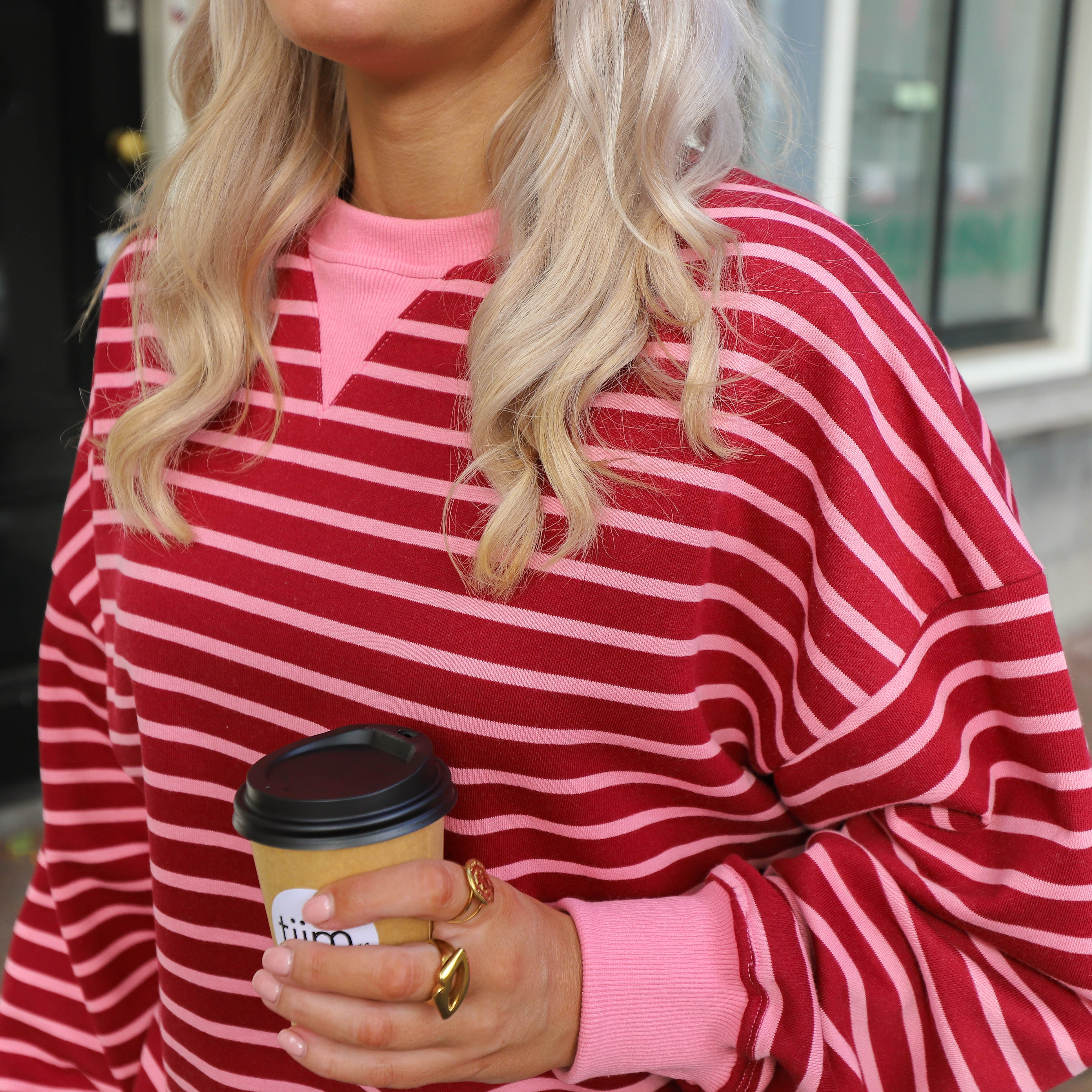 Long streep sweater roze
