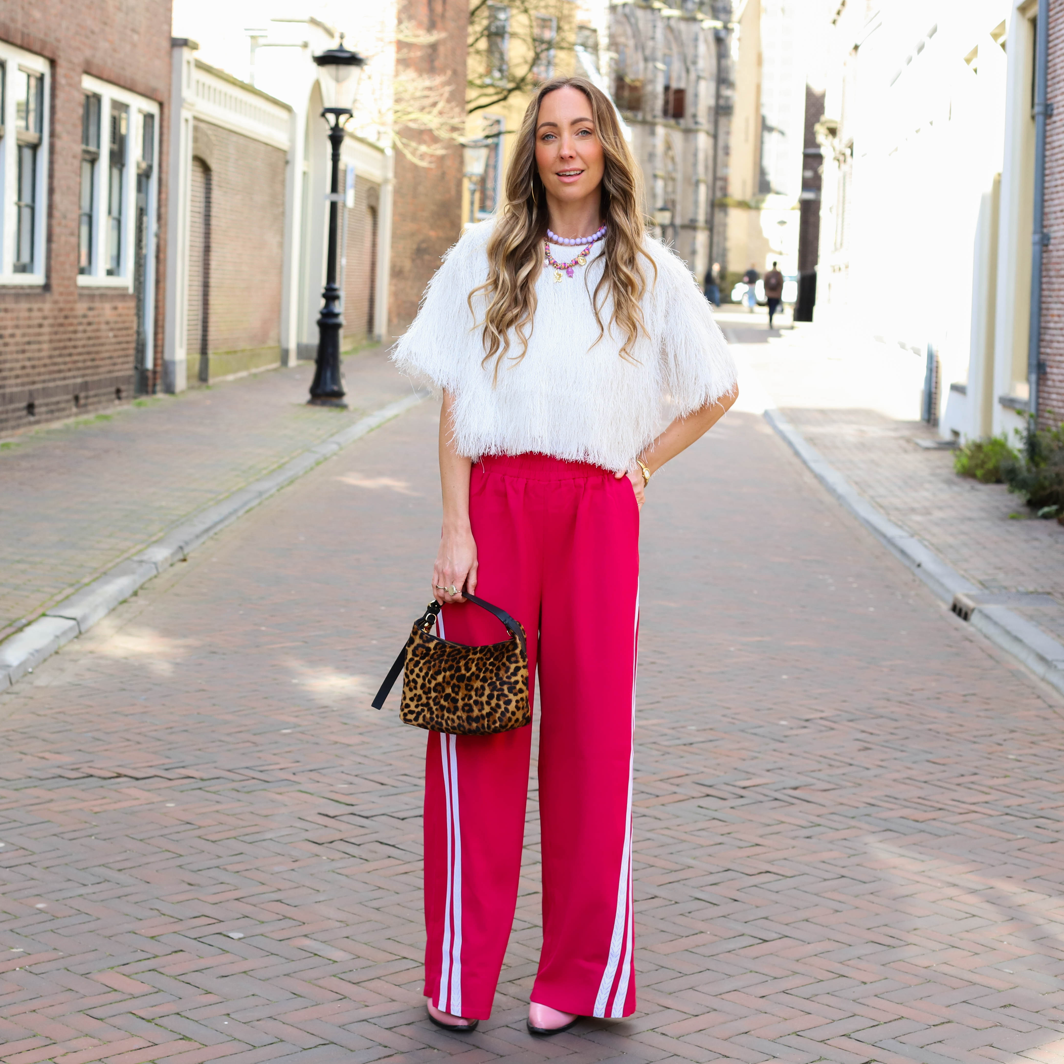 Lou streep broek roze rood