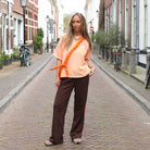 Combineer de pantalon met een matchende oranje top voor een gedurfde 'co-ord' look, of draag hem met een basic sweater voor een trendy casual vibe!