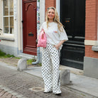Deze polkadot broek is een speels en stijlvol item met een frisse, vrouwelijke uitstraling. De ecru kleur in combinatie met de donkergekleurde stippen geeft de broek een tijdloze maar toch opvallende look. De zachte, soepel vallende stof zorgt voor een comfortabele fit die mooi met je meebeweegt.