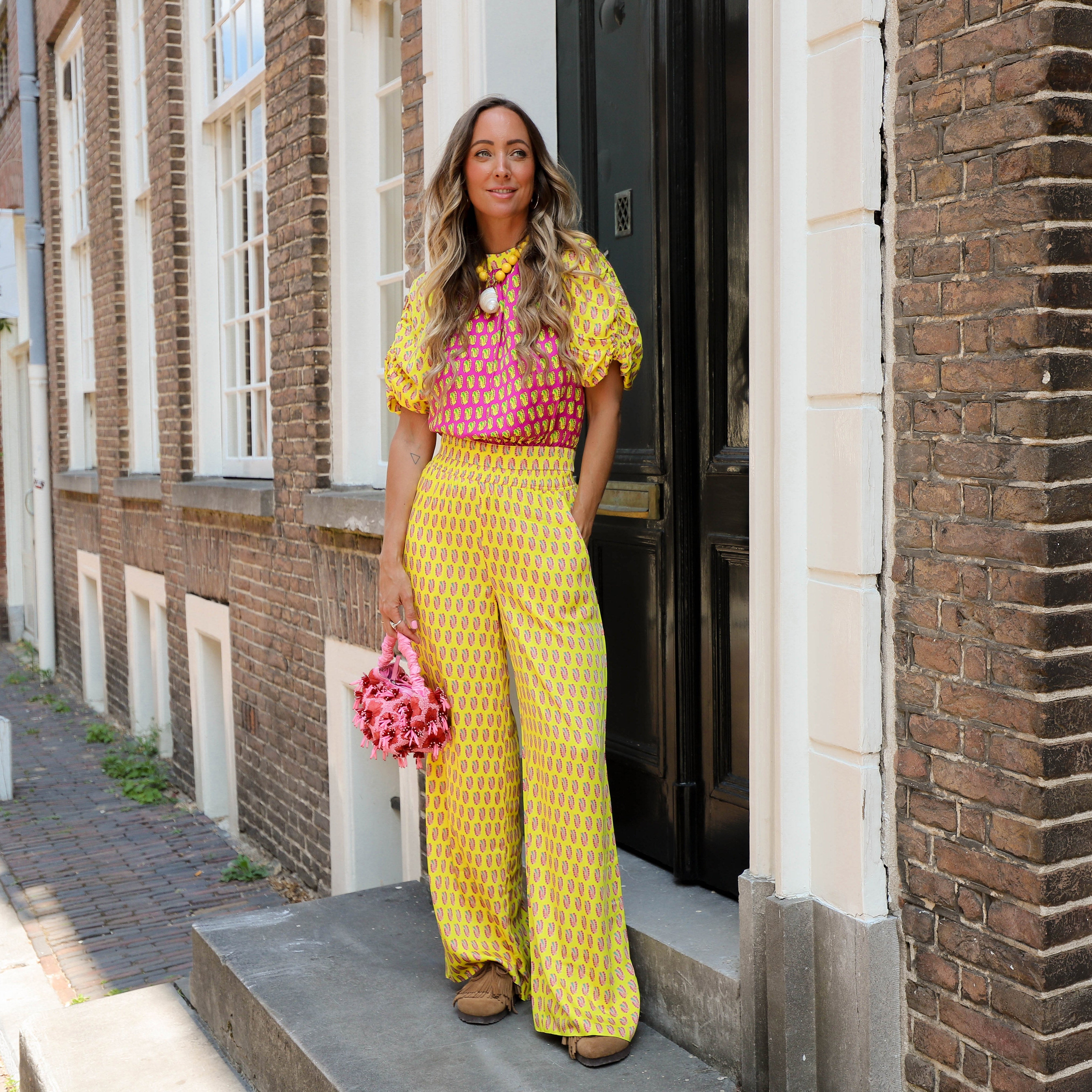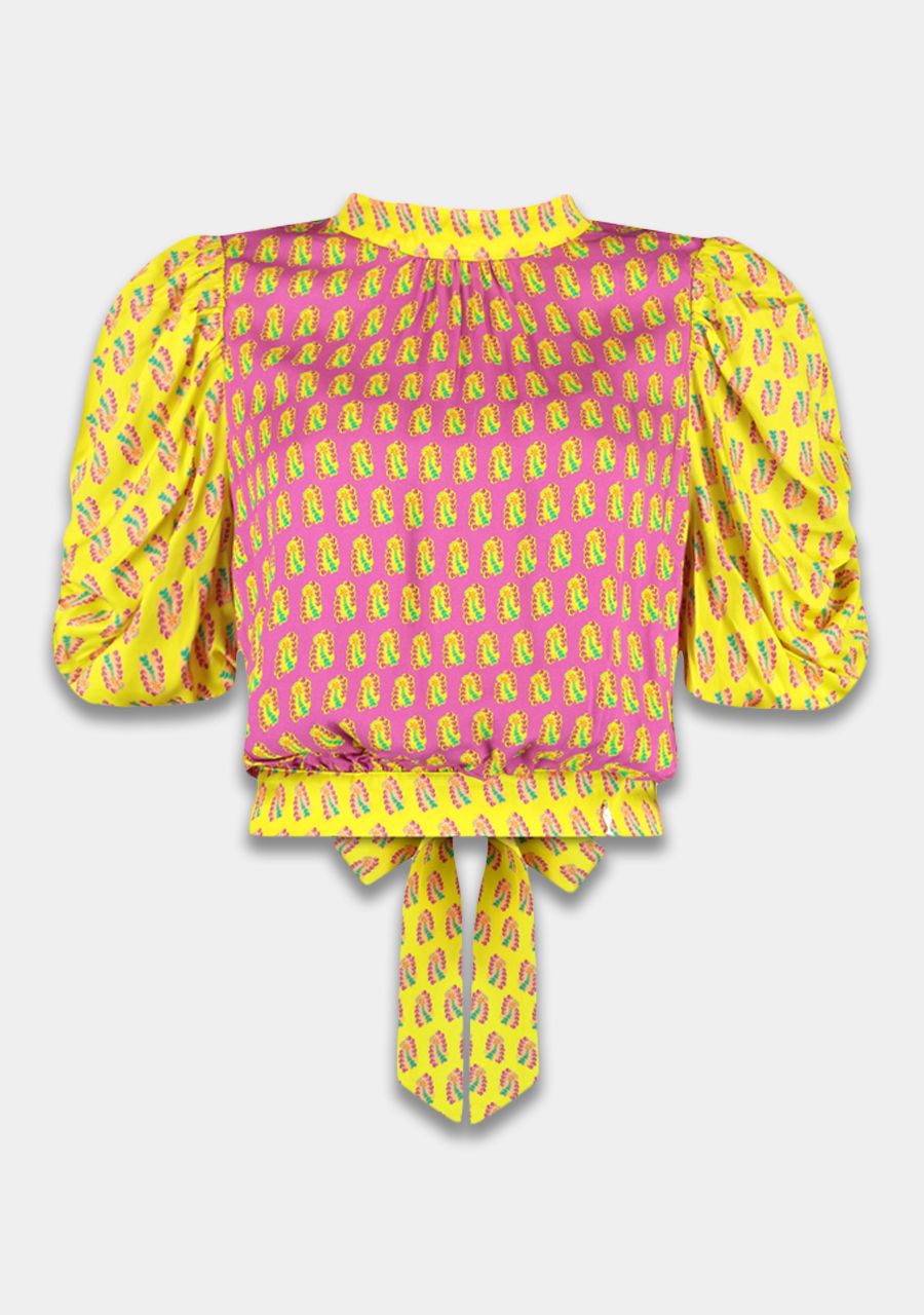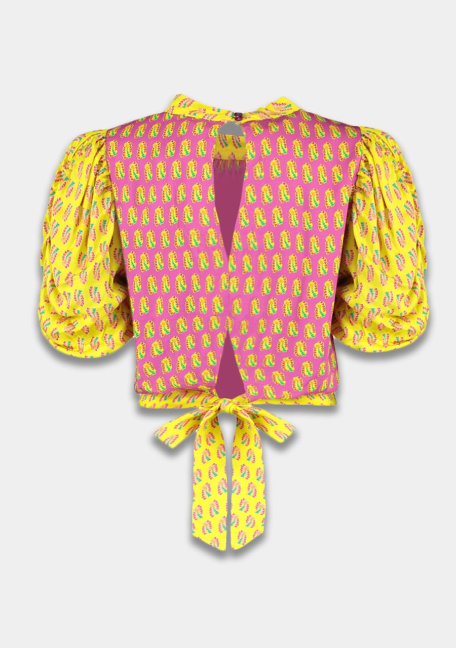 De MACEY top is allesbehalve basic. Deze cropped blouse valt op door de pofmouwen, opvallende striksluiting aan de achterkant en het kleurcontrast tussen het roze lijfje en de gele mouwen. De achterkant met open details en sierlijke strik zorgt voor een vrouwelijke en speelse twist, perfect voor warme dagen en zonnige vibes. Gemaakt van een luchtige stof die licht aanvoelt, is dit item zowel stijlvol als comfortabel. Combineer 'm met de MILA short voor een gedurfde co-ord set, of draag 'm los met de YVE short voor een laidback look. Add a little sunshine to your day.