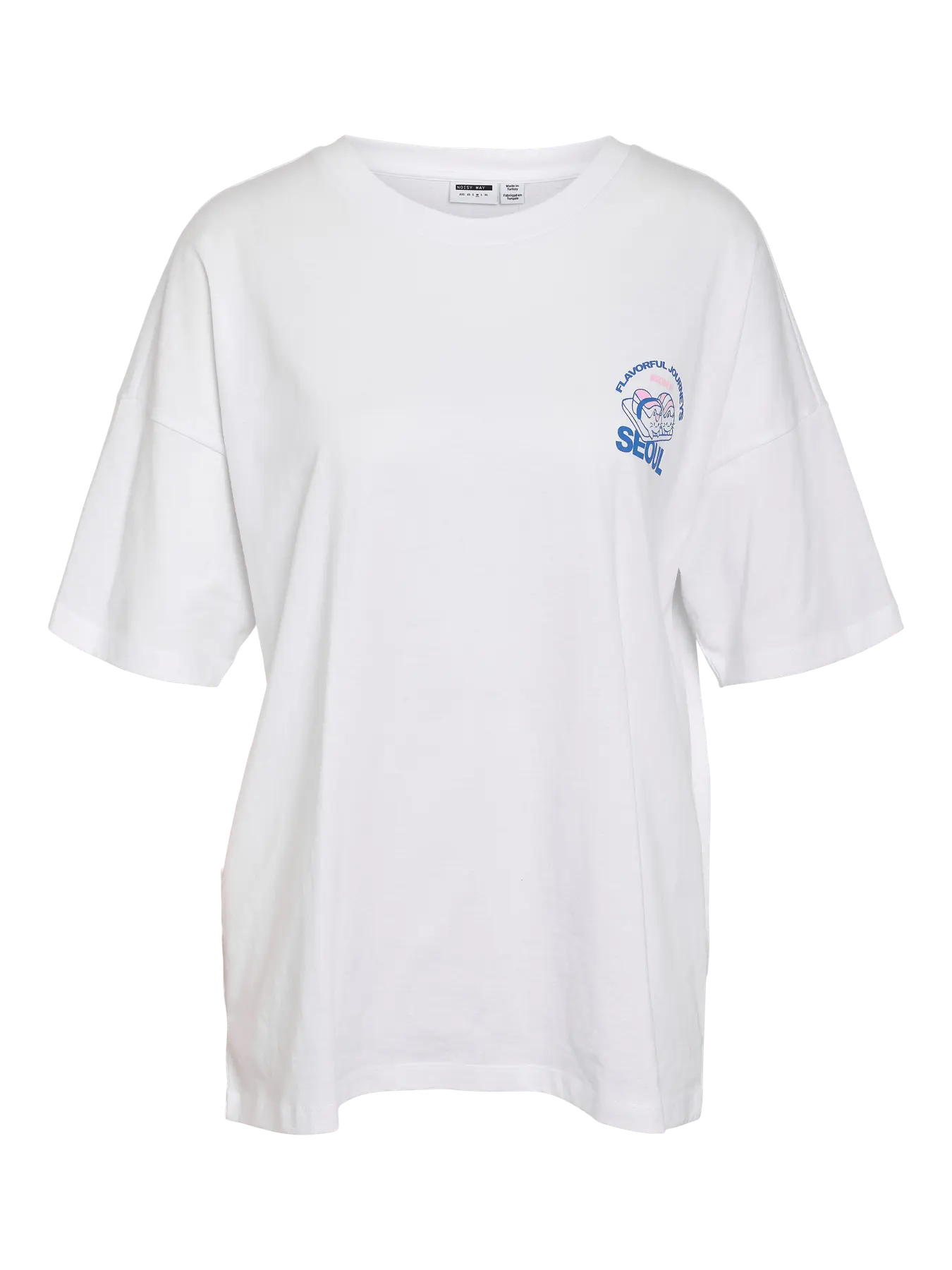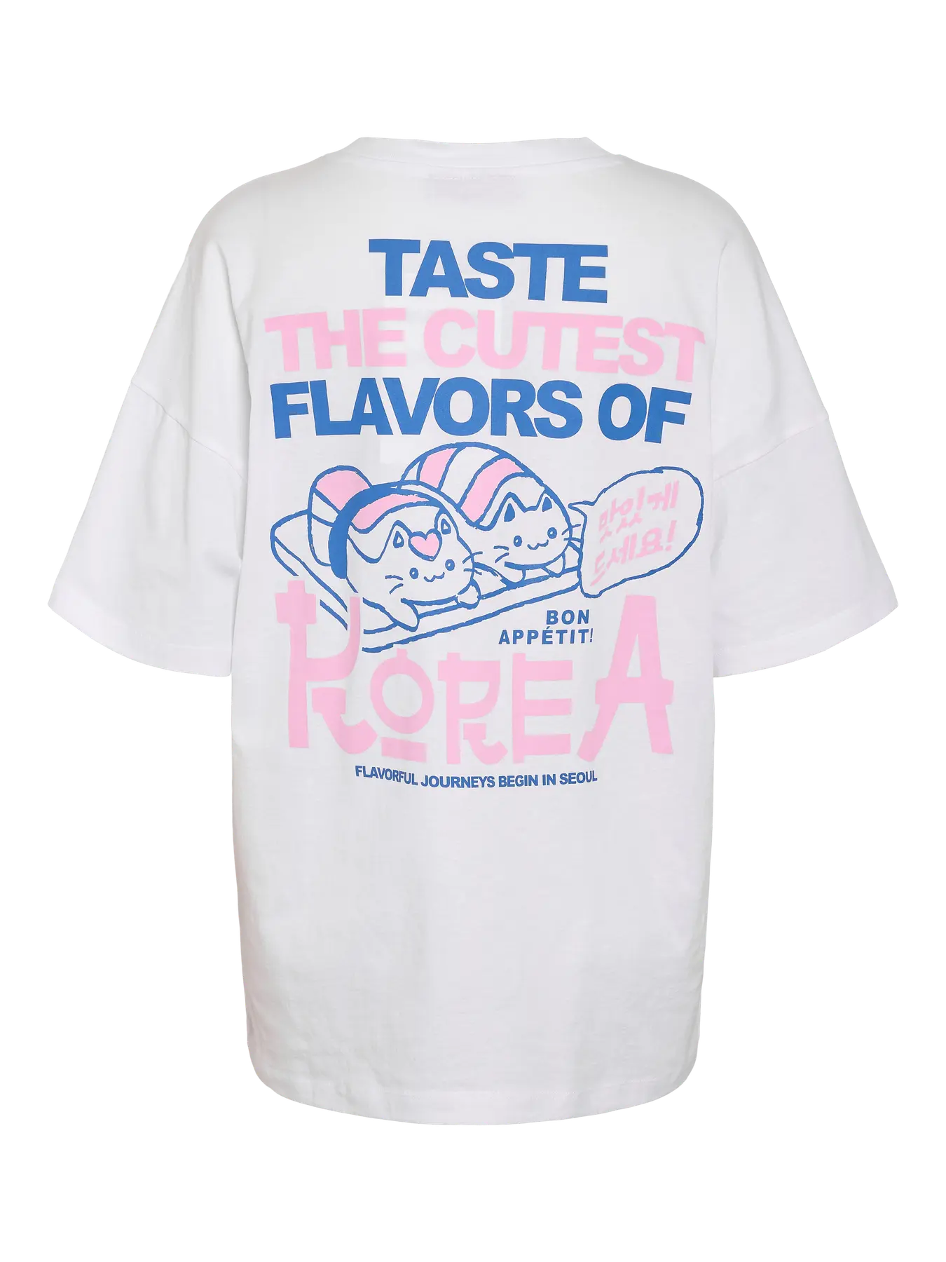 Dit casual witte T-shirt is perfect voor een relaxte en trendy look. Het shirt heeft een ronde hals en een korte mouw. Op de borst staat een leuke, subtiele print van een kom ramen met de tekst 'FLAVORFUL JOURNEYS SEOUL'.