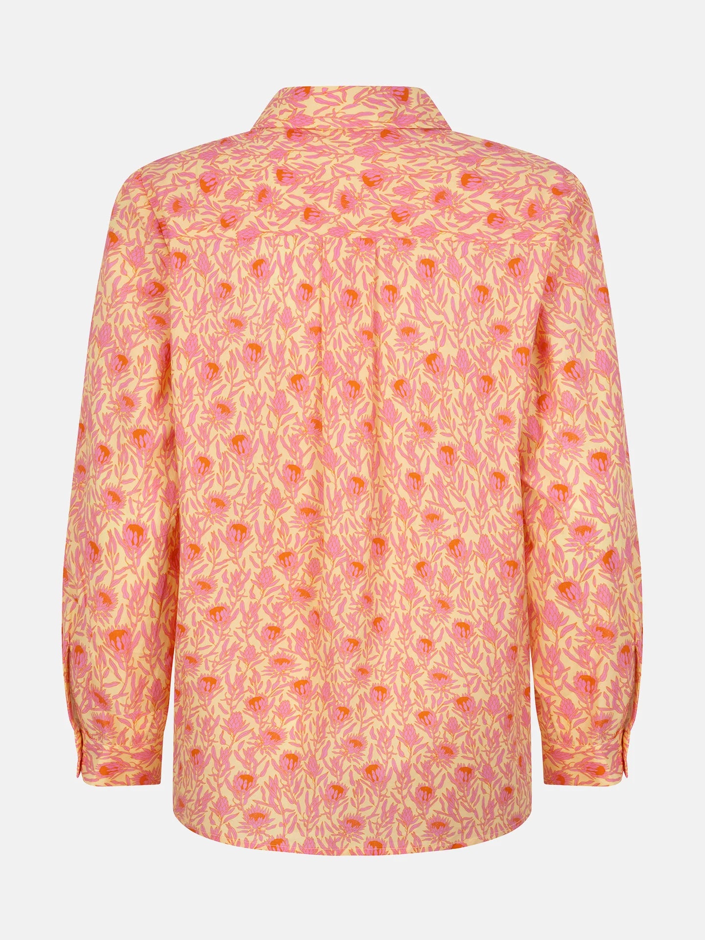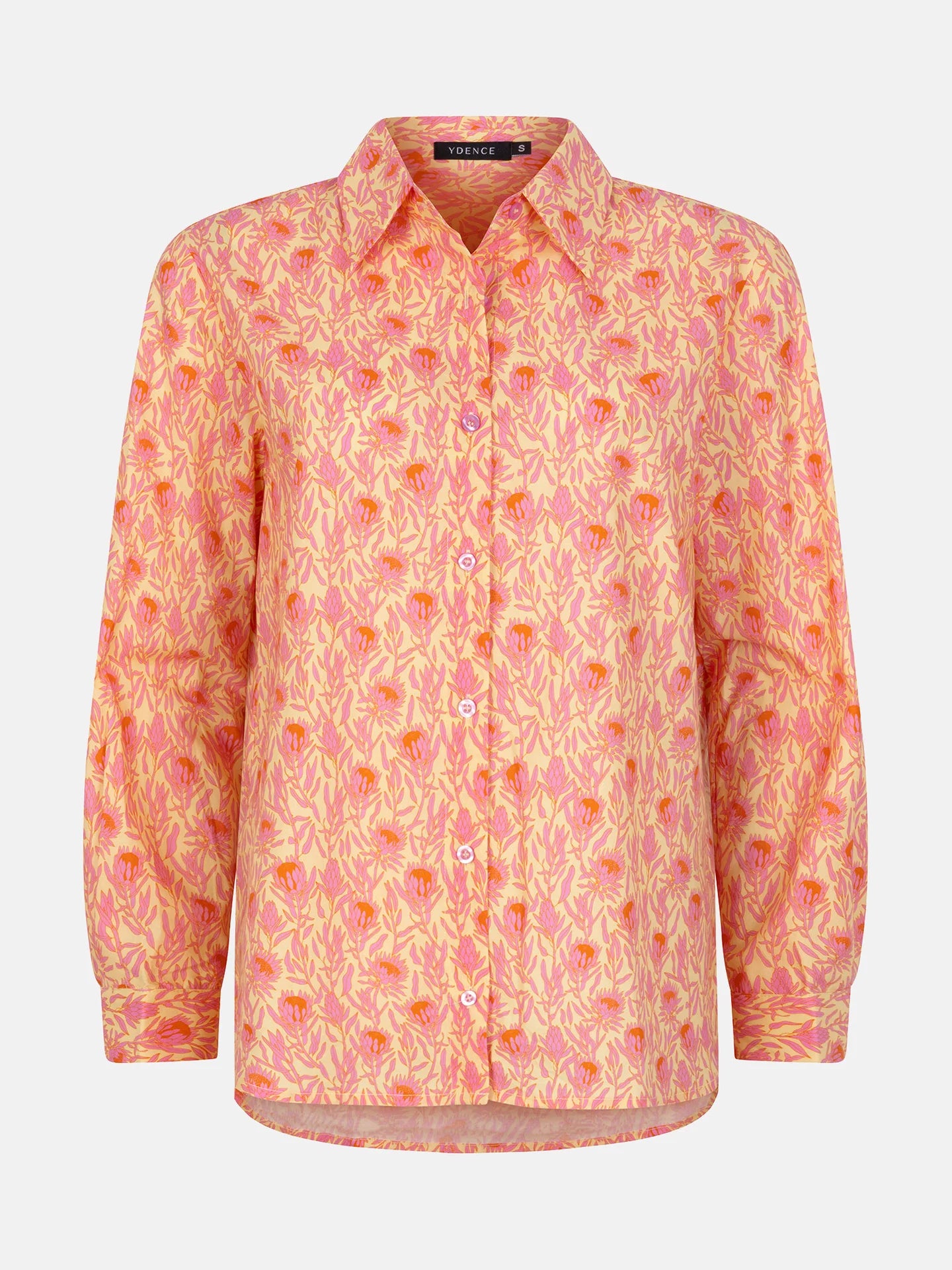 Blouse Celia is een vrouwelijke overhemdblouse met een rechte, oversized pasvorm. De blouse heeft een knoopsluiting, manchetten met knoopje en een kraagje. Het langere achterpand en de sierplooi aan de achterzijde maken de blouse helemaal af voor een elegante uitstraling.