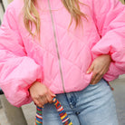Deze Puffer Jacket Diamond is de perfecte match voor een frisse, on-trend look. De jas is uitgevoerd in een prachtige roze tint en voorzien van een stijlvol doorgestikt ruitpatroon. Dankzij de hoge opstaande kraag en de handige ritssluiting blijf je niet alleen warm, maar zie je er ook direct fashionable uit.