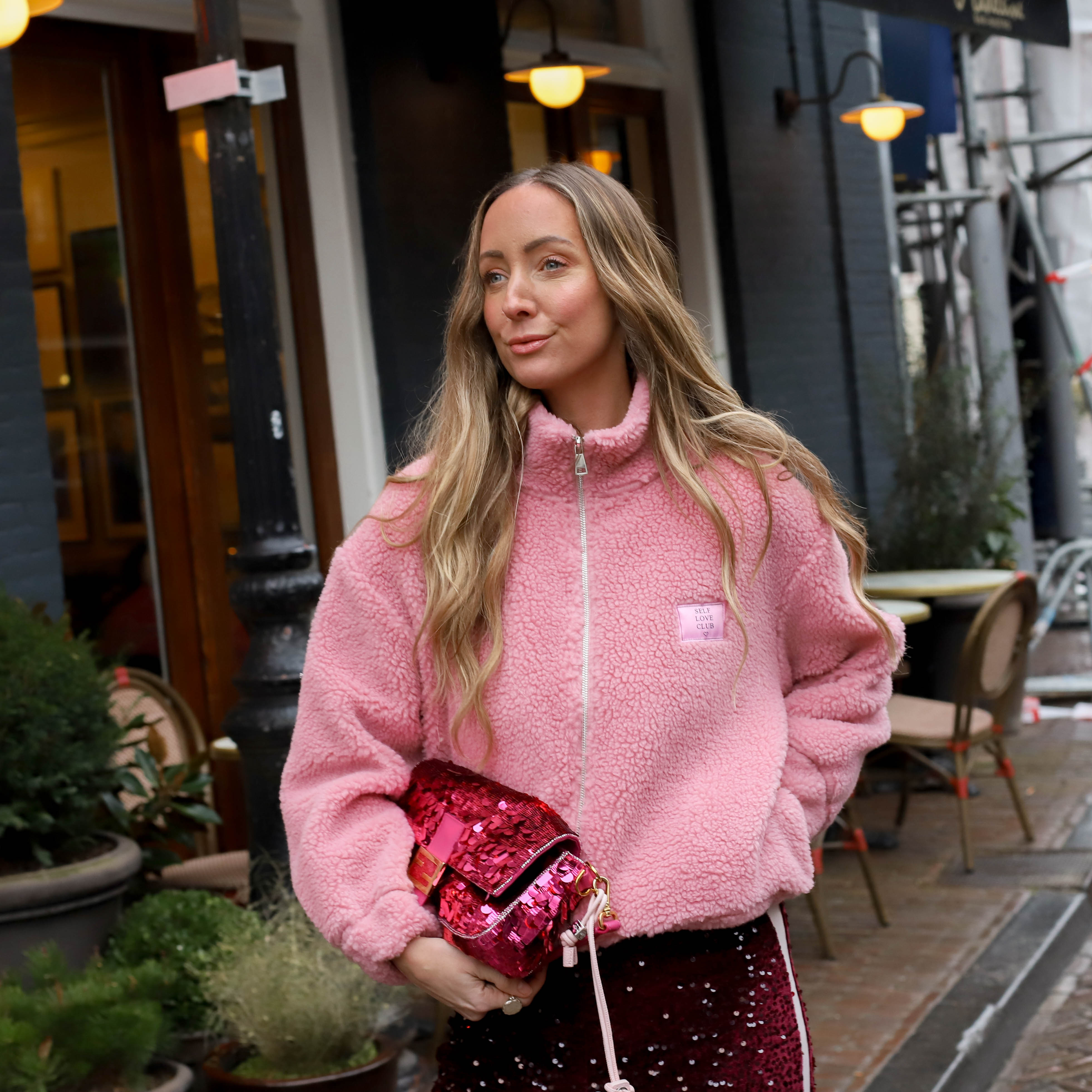 Dit Teddy Jacket Self Love is de ultieme knusse toevoeging aan je garderobe. Het jack heeft een heerlijk zachte teddy-structuur en is voorzien van een subtiele "Self Love Club" patch op de borst voor een positieve, on-trend uitstraling. Met de handige ritssluiting, hoge opstaande kraag en relaxte pasvorm creëer je moeiteloos een sportieve en fashionable look.
