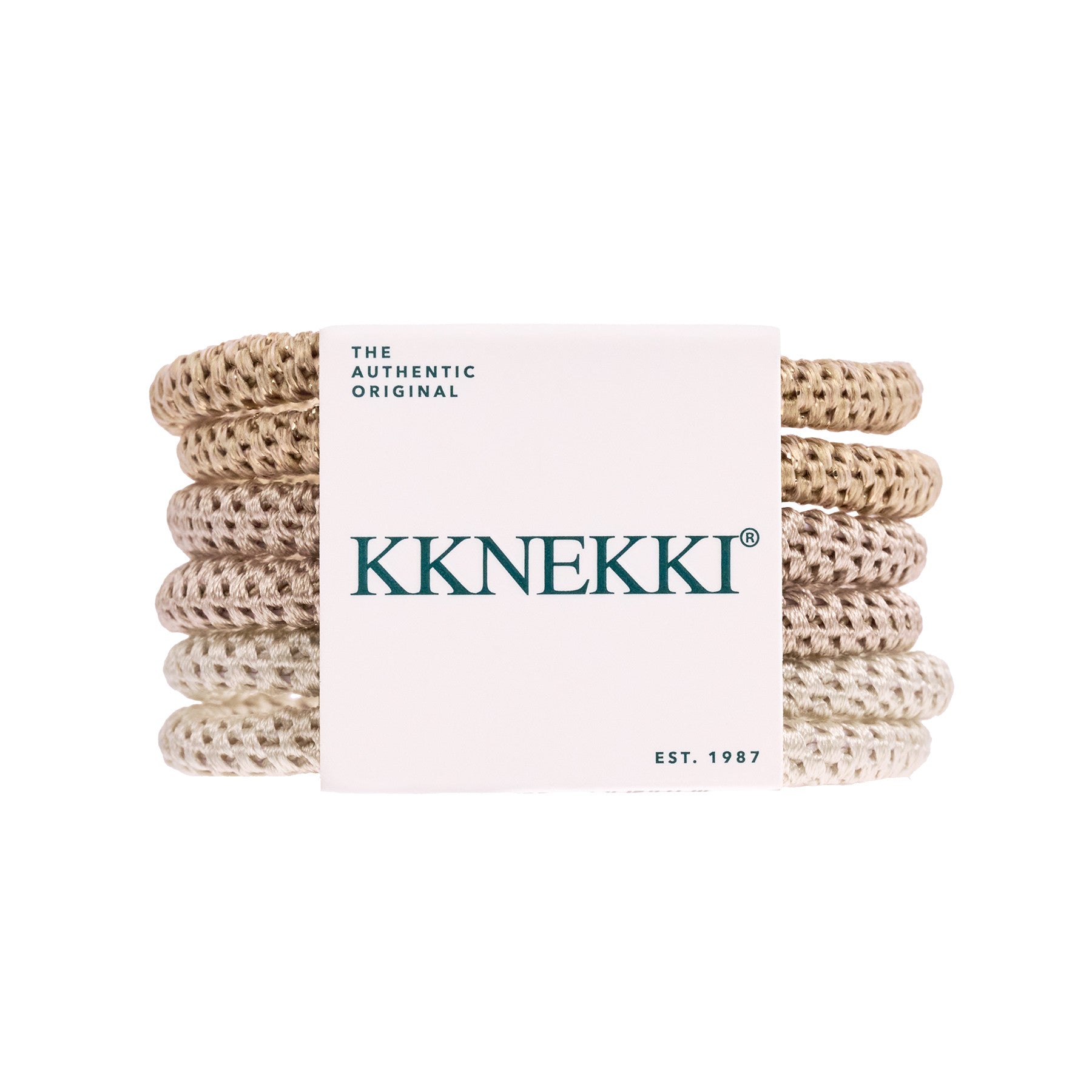 Een set van de originele Kknekki haarelastiekjes, dé trend van nu. Super fijn en comfy in je haar en ook leuk te dragen als armbandje.