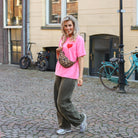 Dit T-shirt Summer of Love is een trendy en comfortabel shirt met een stoere, gewassen look. De roze washeddenim-kleur geeft het item een vintage uitstraling, terwijl de opvallende rode hart-print met de tekst "Summer of Love" voor een vrolijk en speels accent zorgt. Het shirt heeft een relaxte pasvorm met een klassieke ronde hals en korte mouwen, waardoor het perfect te combineren is met een jeans of rok voor een moeiteloze, stijlvolle outfit.