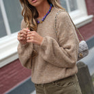Deze zachte bruin trui is de perfecte, warme toevoeging voor de koudere dagen. De heeft een klassieke ronde hals. Het materiaal heeft een heerlijk zachte, pluizige textuur, wat zorgt voor optimaal draagcomfort. Dankzij de wijde, boxy fit valt deze trui lekker losjes, wat zorgt voor een nonchalante en modieuze cropped look.