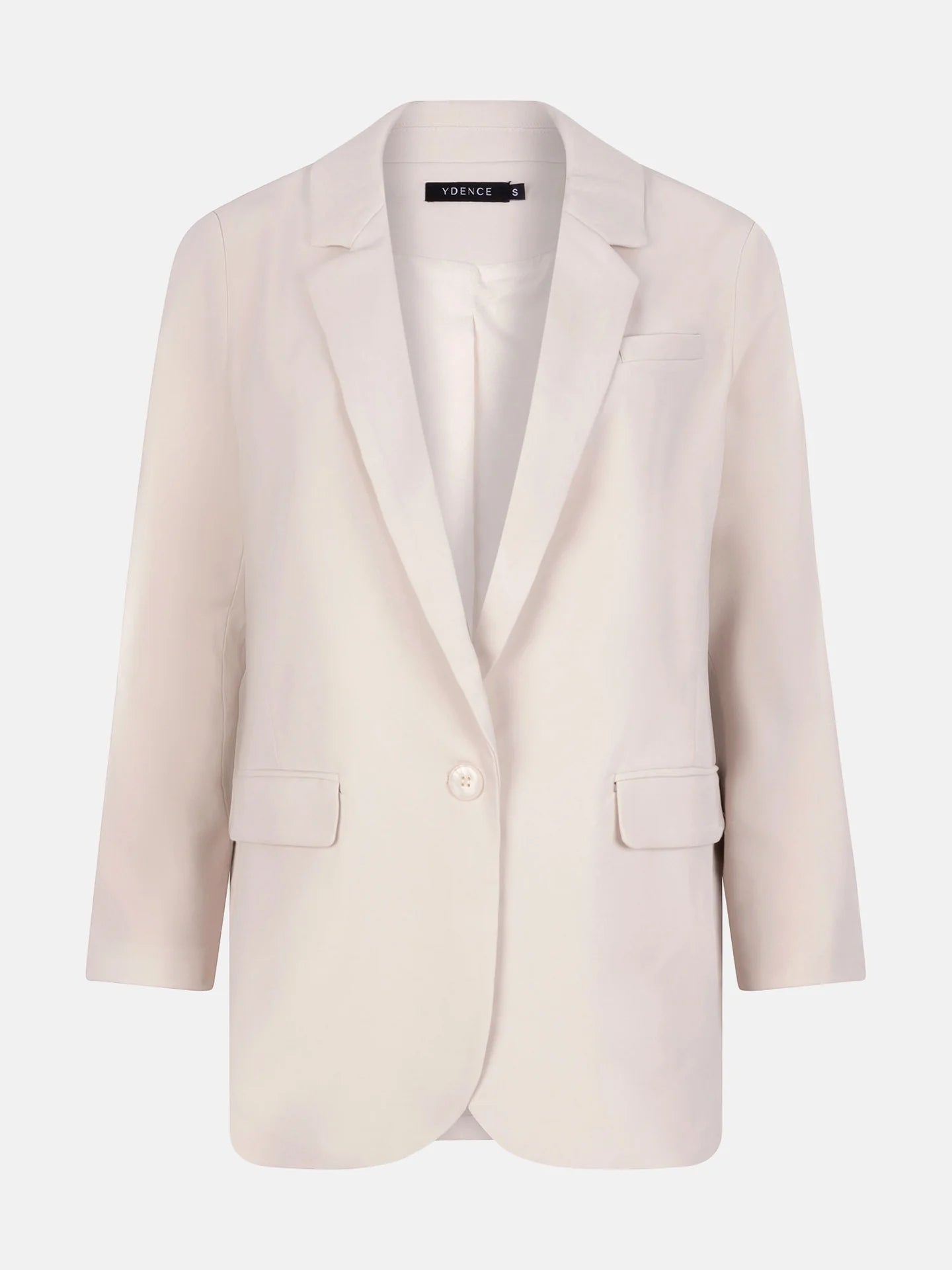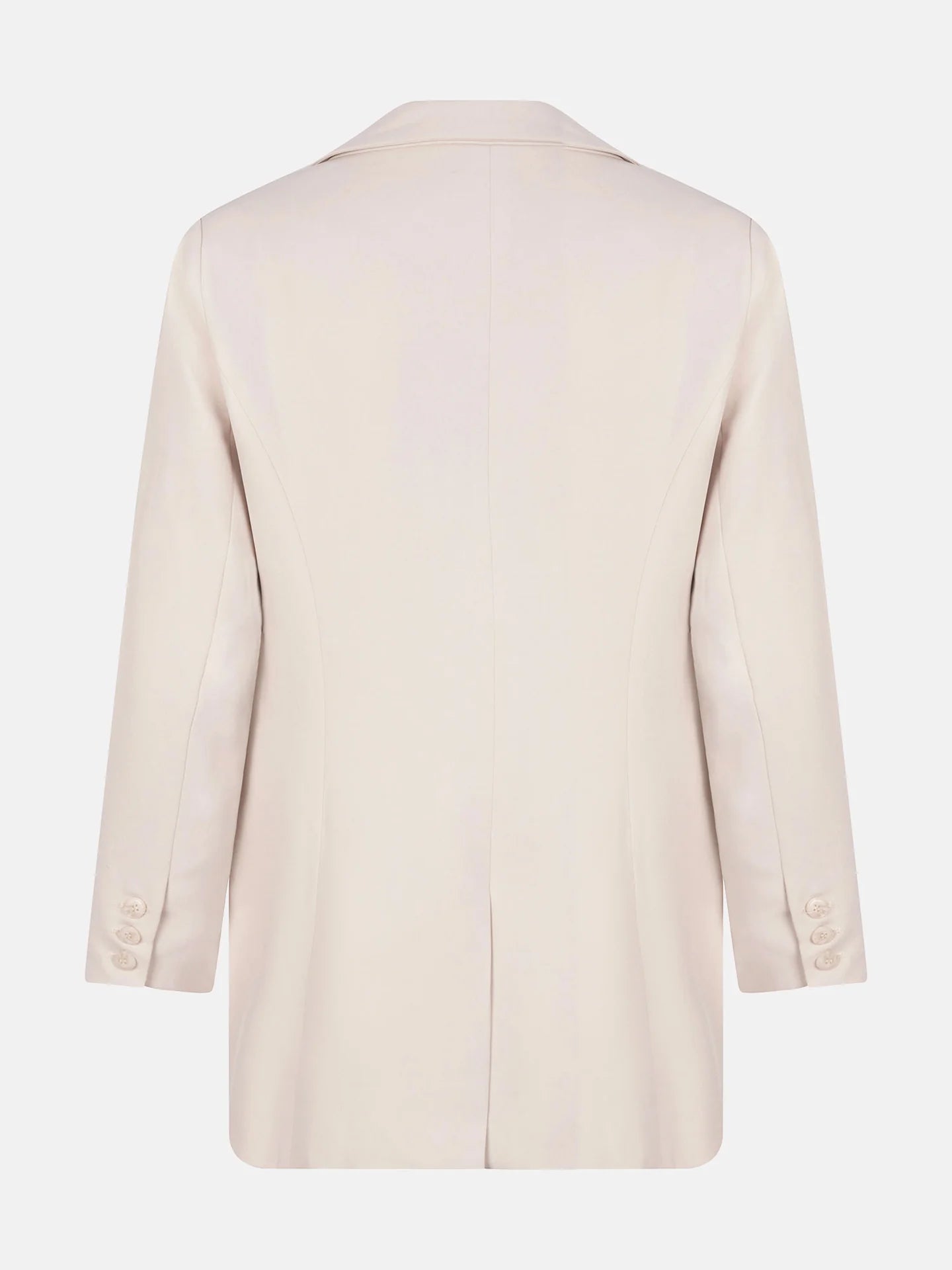 Blazer Maisie is een stoere, vrouwelijke, oversized blazer. De blazer heeft paspelzakken met klep aan de voorzijde en sluit met een enkele knoopsluiting. De blazer is gemaakt van een rijke stof bestaande uit polyester en rayon en is volledig gevoerd. Aan de achterzijde van de blazer zit een kleine split. De lengtemaat van Blazer Maisie is 75cm bij een maat S. De mouwlengte is 60cm.