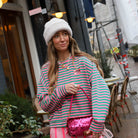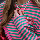 Dit Amour Paris Striped Sweatshirt geeft je outfit direct een tijdloze, Franse touch. De trui valt op door het klassieke streeppatroon en de contrasterende "AMOUR PARIS" patch op de borst. Met zijn relaxte, licht kortere pasvorm en verlaagde schoudernaden is dit het ideale item voor een moeiteloos stijlvolle look.
