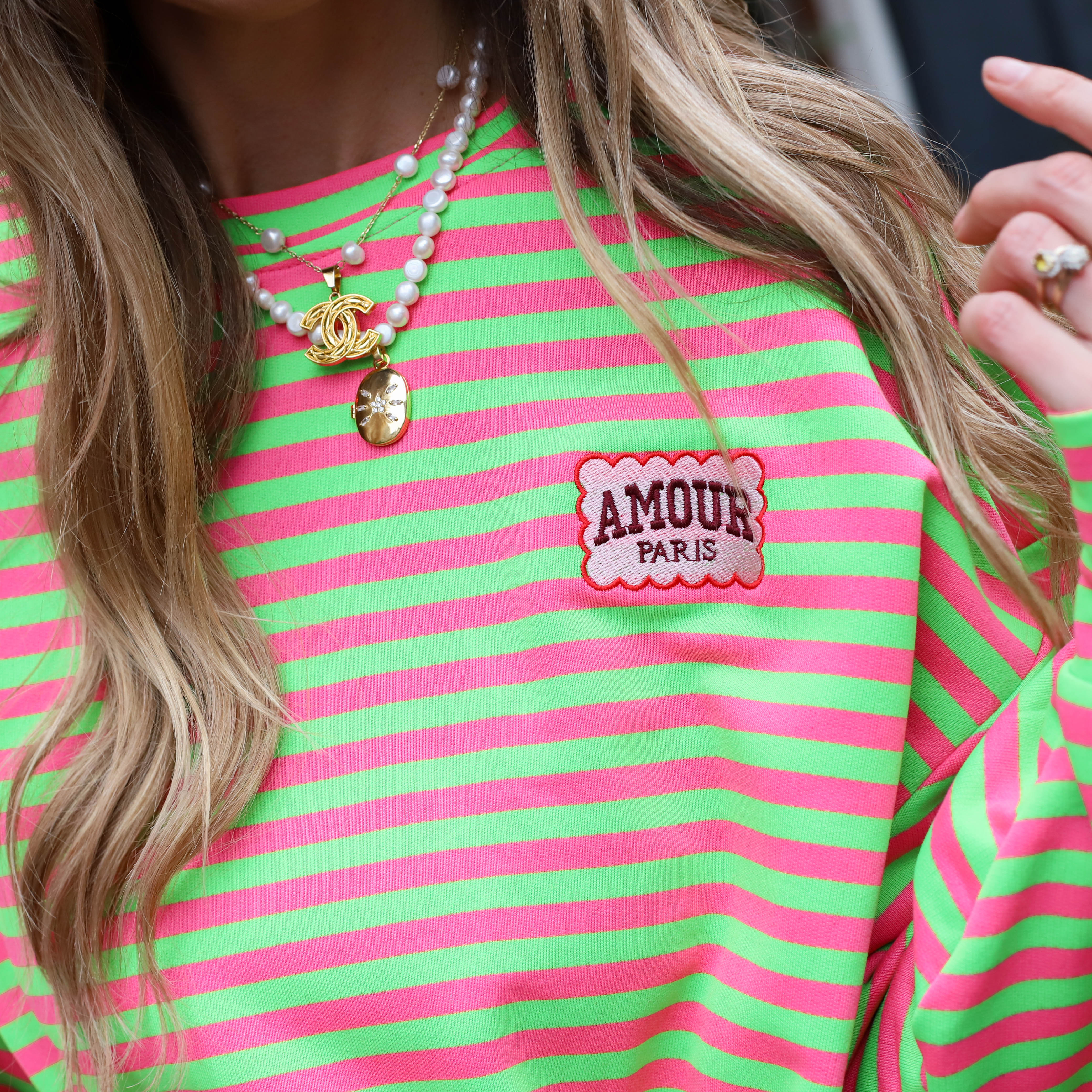 Amour top lichtgroen lichtroze streep