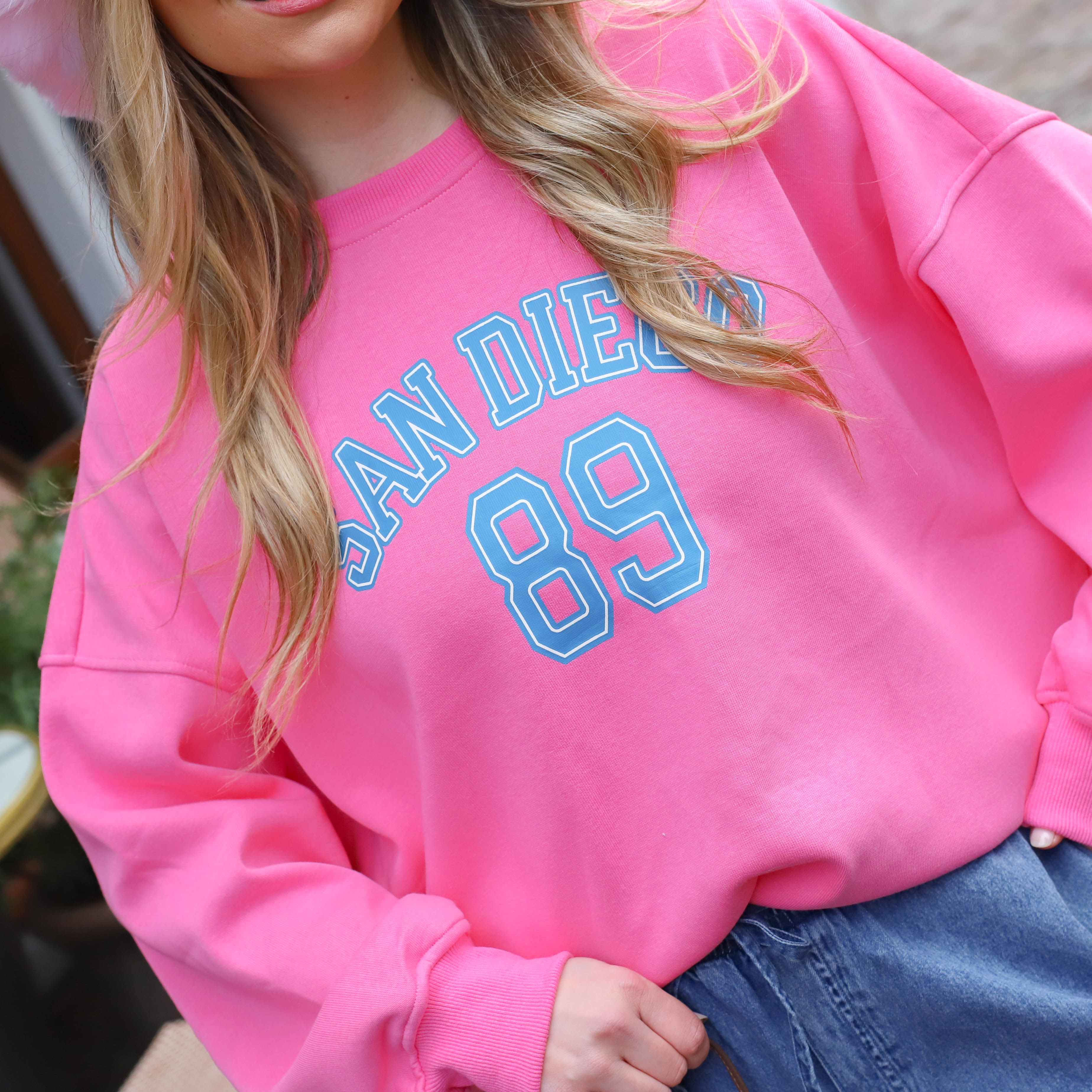 Deze San Diego Sweater is dé musthave voor een on-trend, sportieve look! De sweater heeft een mega chille baggy fit met verlaagde schoudernaden, wat zorgt voor die ultieme oversized vibe die nu helemaal viraal gaat. Met de vette letteropdruk op de borst geef je jouw outfit direct een vintage college-uitstraling. Perfect om te stylen op een wide leg jeans of een comfy joggingbroek voor een dagelijkse streetwear look die zowel comfy als super fashionable is!