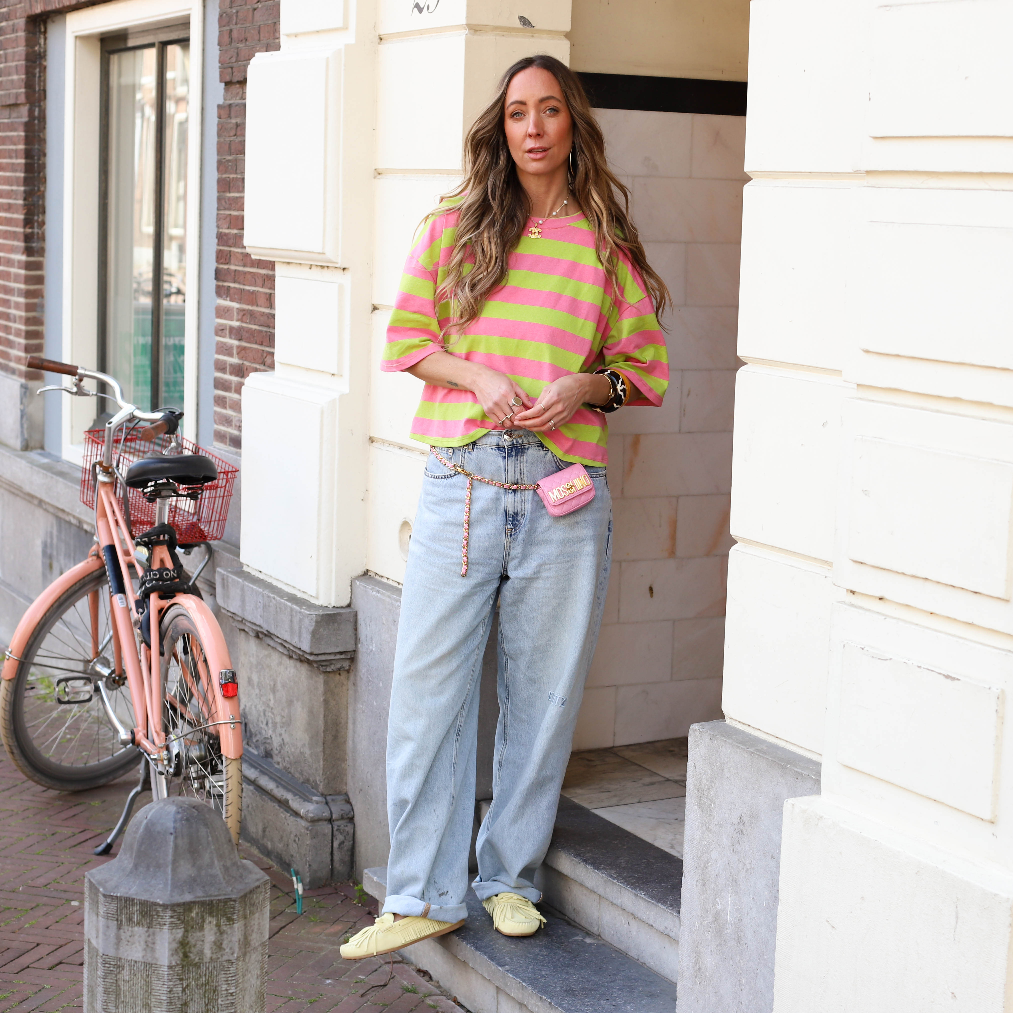 Dit vrolijke gestreepte shirt in roze en groen is een perfecte basic voor een frisse look. De ruime pasvorm en de zachte mix van katoen en polyester maken dit een item dat je het liefst elke dag draagt.