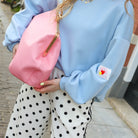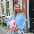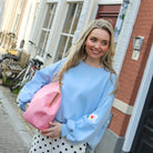 Deze lichtblauwe sweater is een zacht en comfortabel item met een frisse en rustige uitstraling. De minimalistische look wordt subtiel doorbroken door de patch op de mouw, wat zorgt voor een speels en uniek detail. De soepele stof voelt prettig aan en maakt de sweater ideaal voor dagelijks gebruik.