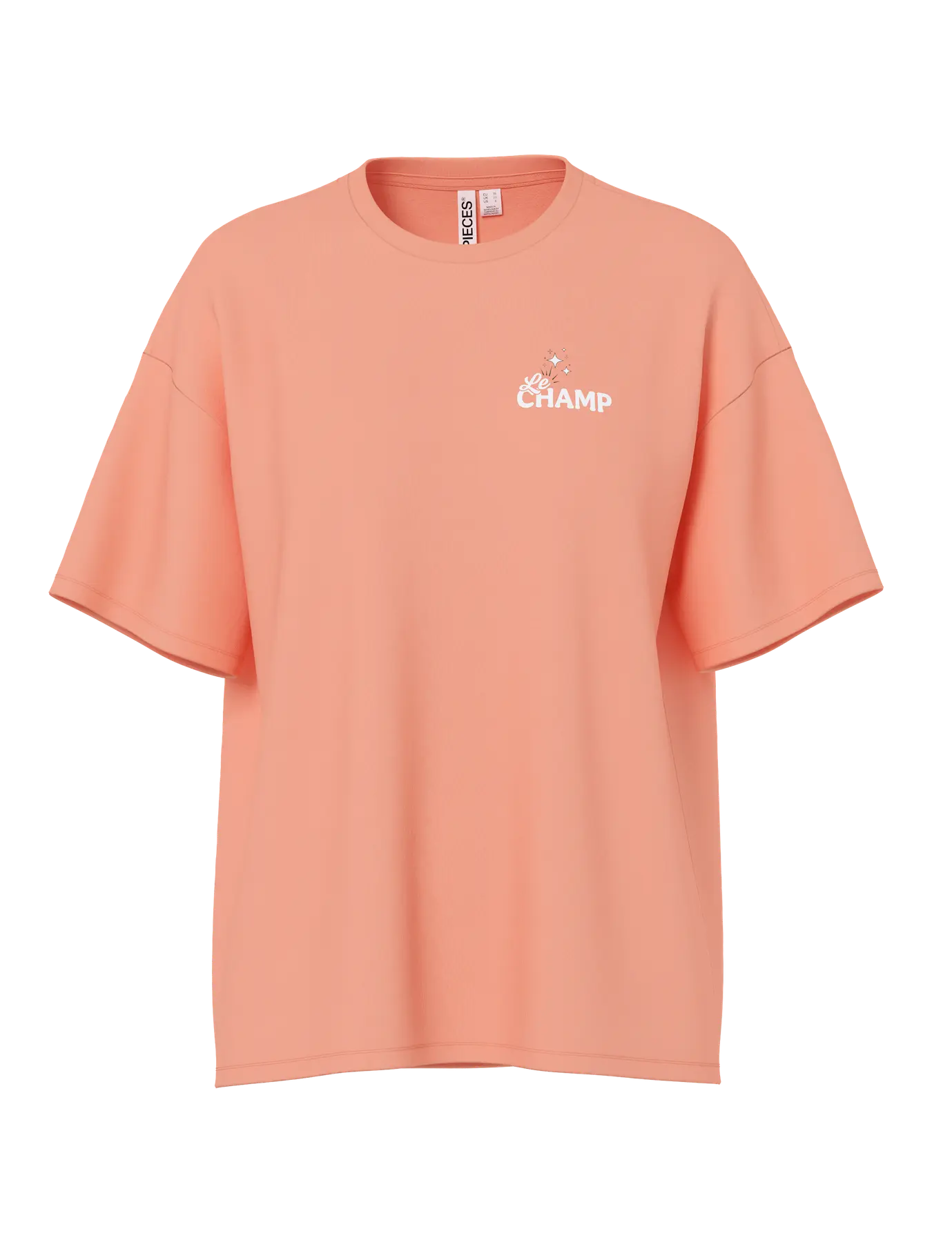 Dit T-shirt is een fris en casual item met een zomerse en relaxte uitstraling. De zachte oranje kleur geeft het shirt een warme en speelse look, terwijl de subtiele print op de borst zorgt voor een minimalistisch en stijlvol detail.