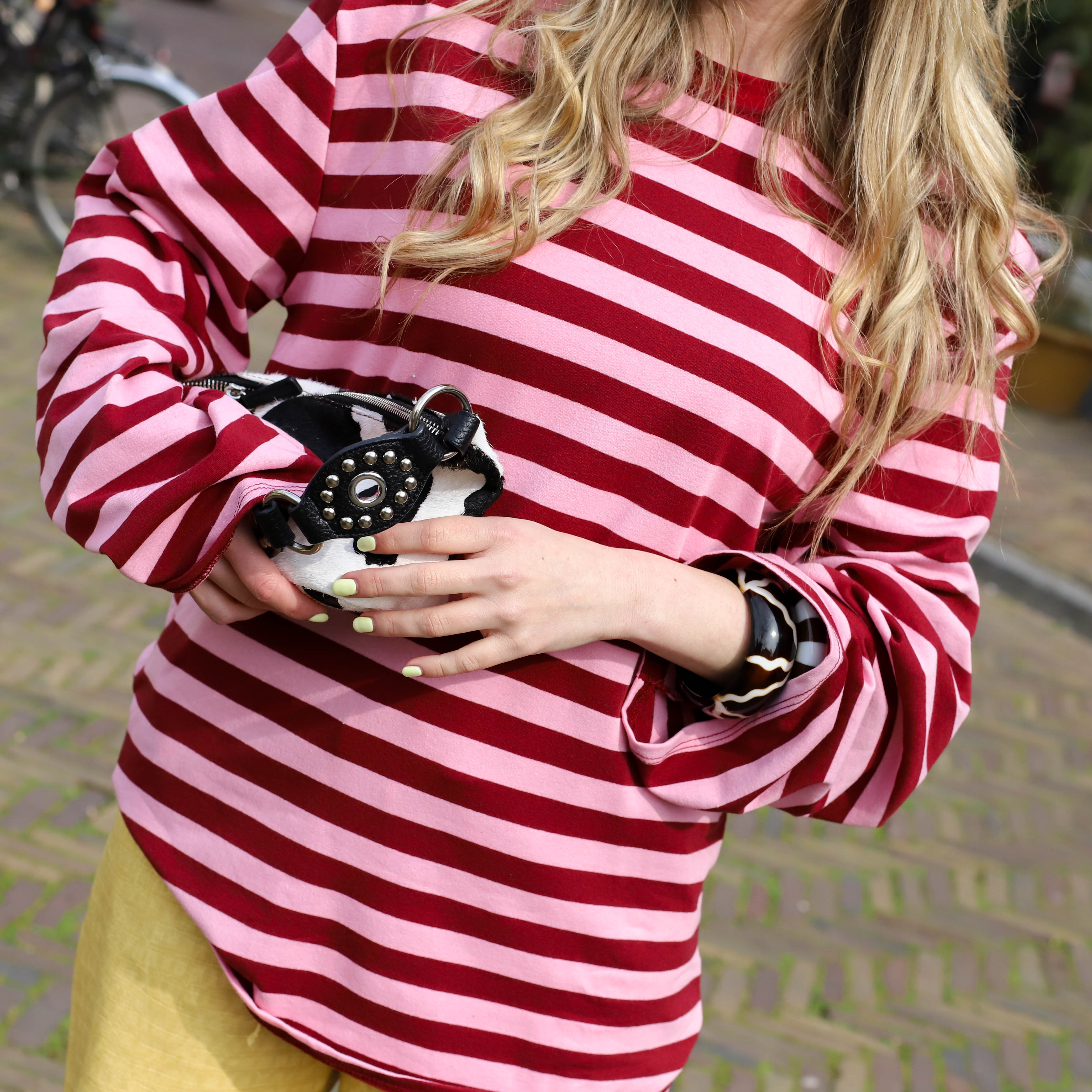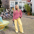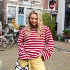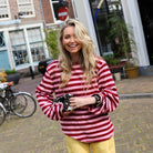 Deze Lilou Top is een comfy en kleurrijke basis voor je dagelijkse look. De top is gemaakt van een zachte, soepele stof en heeft een opvallend horizontaal streepdessin in een klassieke combinatie van bordeauxrood en lichtroze.