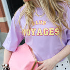 Dit lila T-shirt is een speels en casual item met een frisse en zachte uitstraling. De subtiele kleur geeft het shirt een rustige basis, terwijl de “Club Voyages” print op de borst zorgt voor een opvallend en trendy detail.