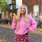 Deze Isa Gebreide Trui is een heerlijk zachte en kleurrijke trui die perfect is voor de koudere dagen. De trui is uitgevoerd in een levendige felroze kleur en heeft een comfortabele, grofgebreide textuur. De ronde hals, de relaxte oversized pasvorm en de wijde, licht gepofte mouwen geven deze trui een moderne en nonchalante uitstraling.