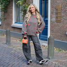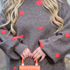 Deze Valentine Trui is een lieve en zachte toevoeging aan je knitwear collectie. De trui is grof gebreid in een warme taupe kleur en is voorzien van opgestikte, geborduurde rode hartjes over de gehele stof.
