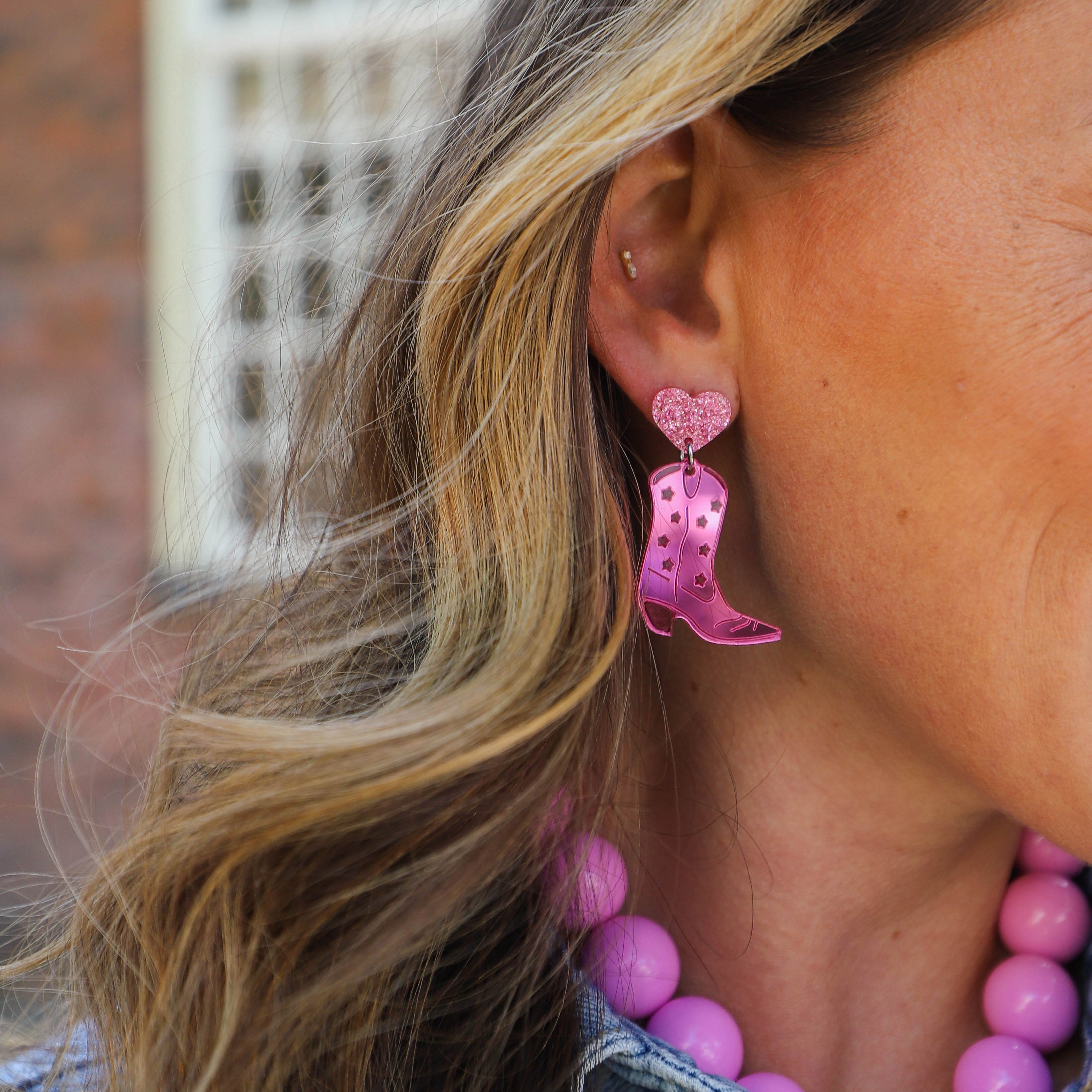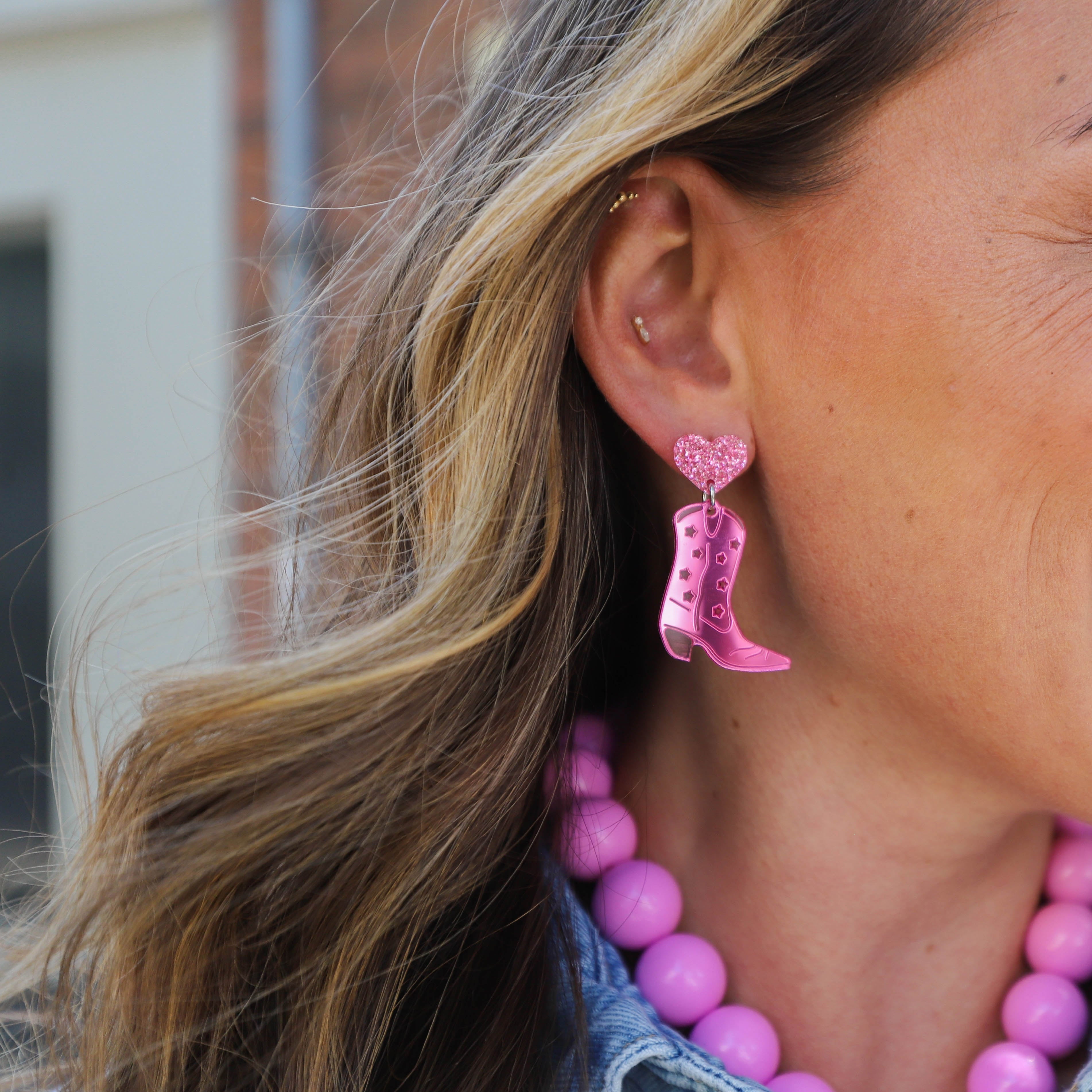 Tena earrings cowboy boots candy pink