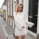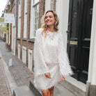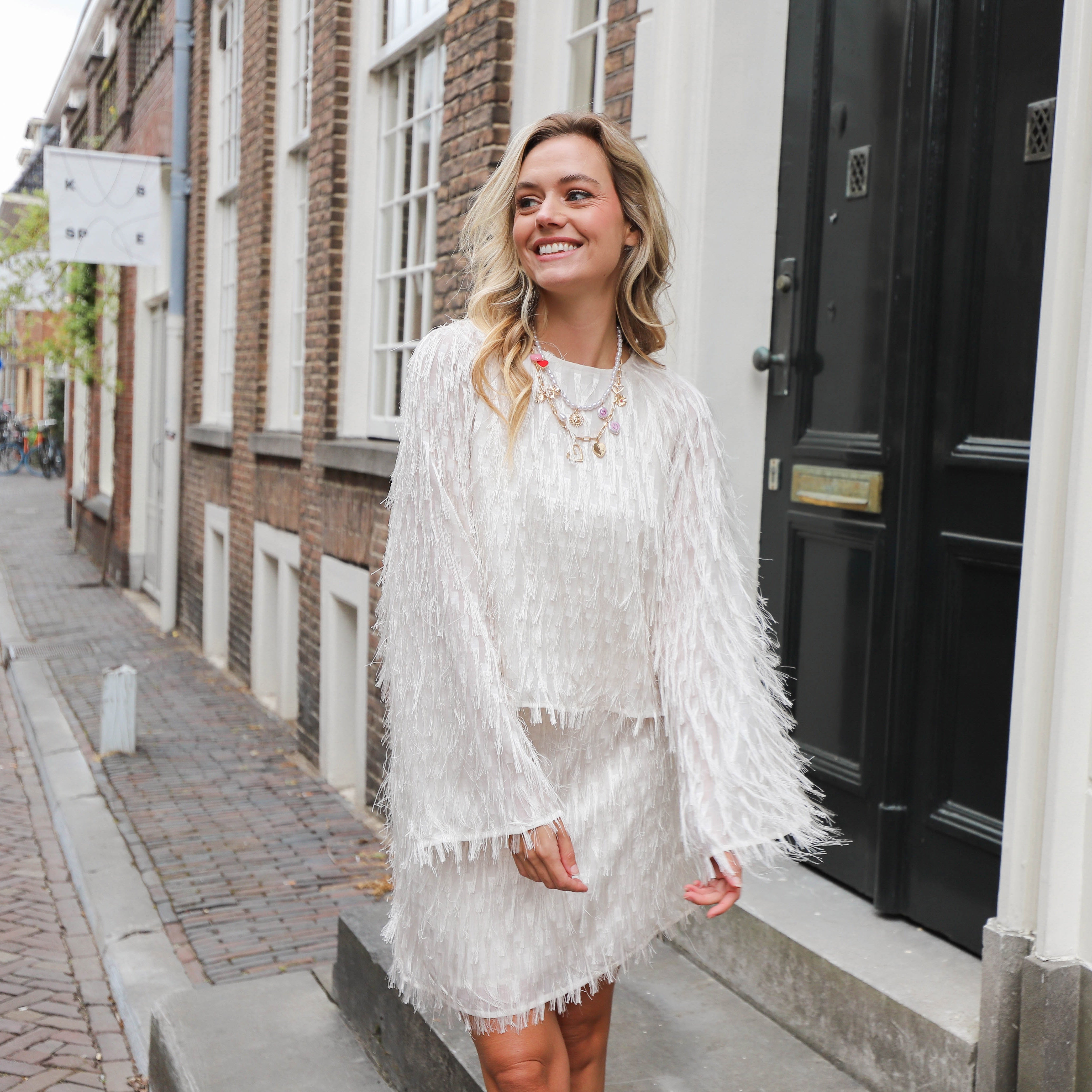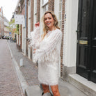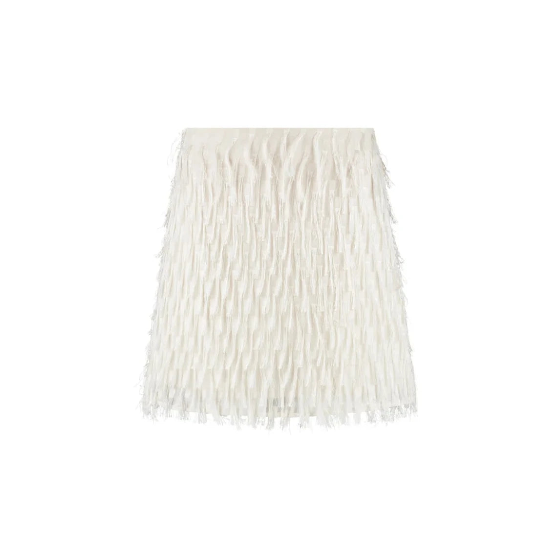 Dit elegante Allison Skirt van Studio Amaya is een absolute eyecatcher. Het rokje heeft een zachte, off-white kleur en is voorzien van een unieke textuur met subtiele franjes, die bij elke beweging een speels effect creëren. De korte lengte maakt het perfect om te combineren met de bijpassende Flo Top voor een complete en dromerige look!