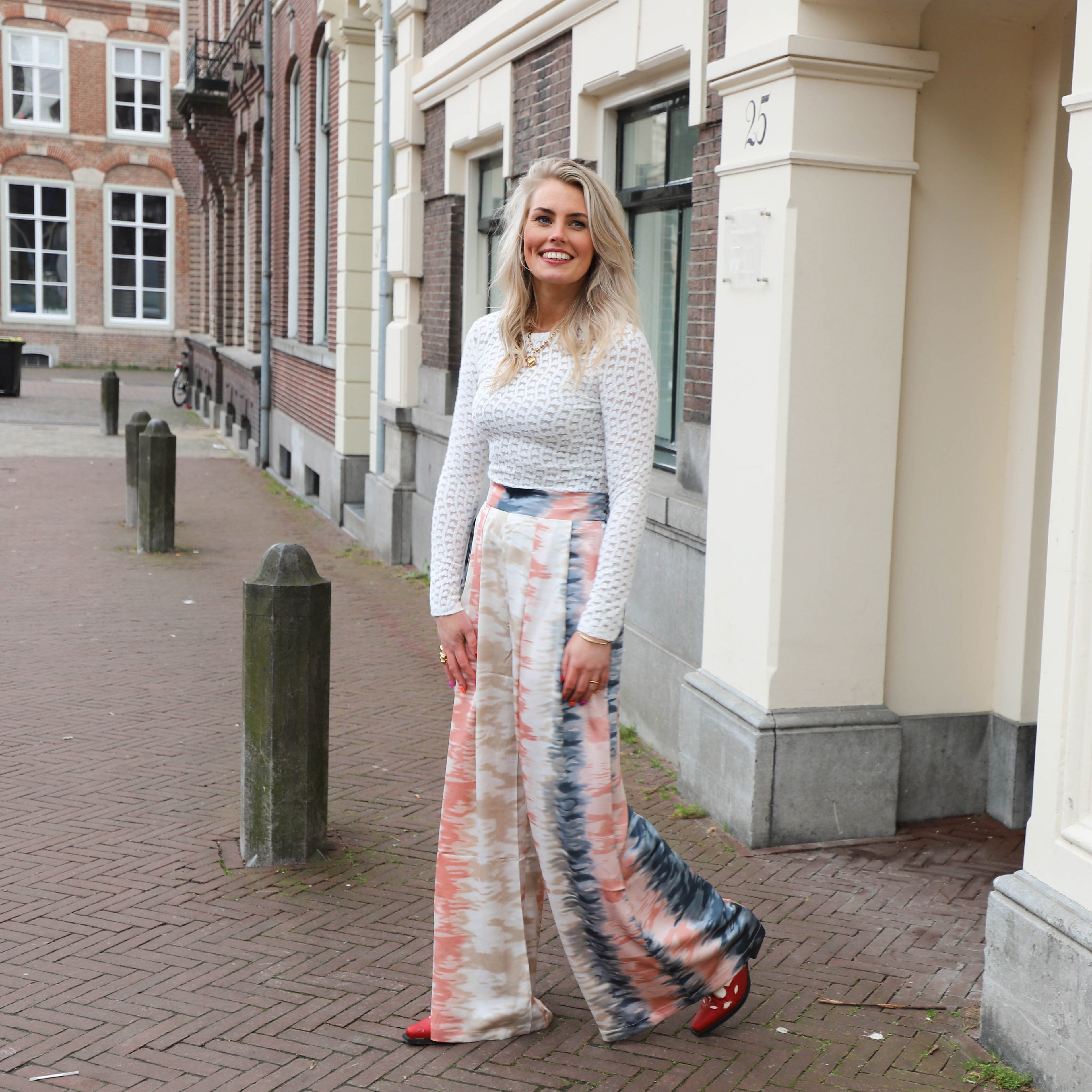 De Ella broek is een prachtige broek met wijde pijpen. De breedte van de broek en de kleuren van de tie-dye print zorgen voor een classy look. Combineer met de Tommie top voor de complete look.