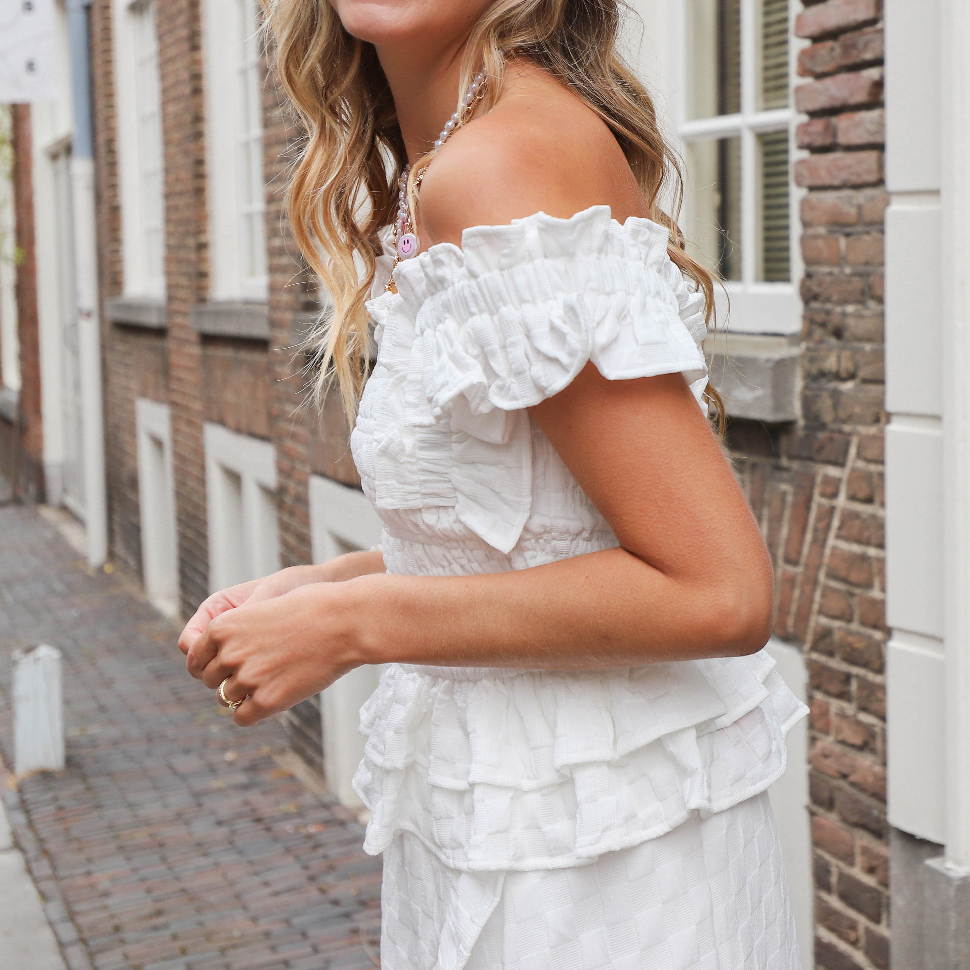 Deze dromerige Ida White Top van Studio Amaya is een echte blikvanger. De top heeft een prachtige, witte kleur en is voorzien van een smockwerk lijfje en speelse ruches aan de schouders en de onderkant. De cropped lengte maakt hem perfect om te combineren met high-waisted broeken en rokken voor een trendy look!