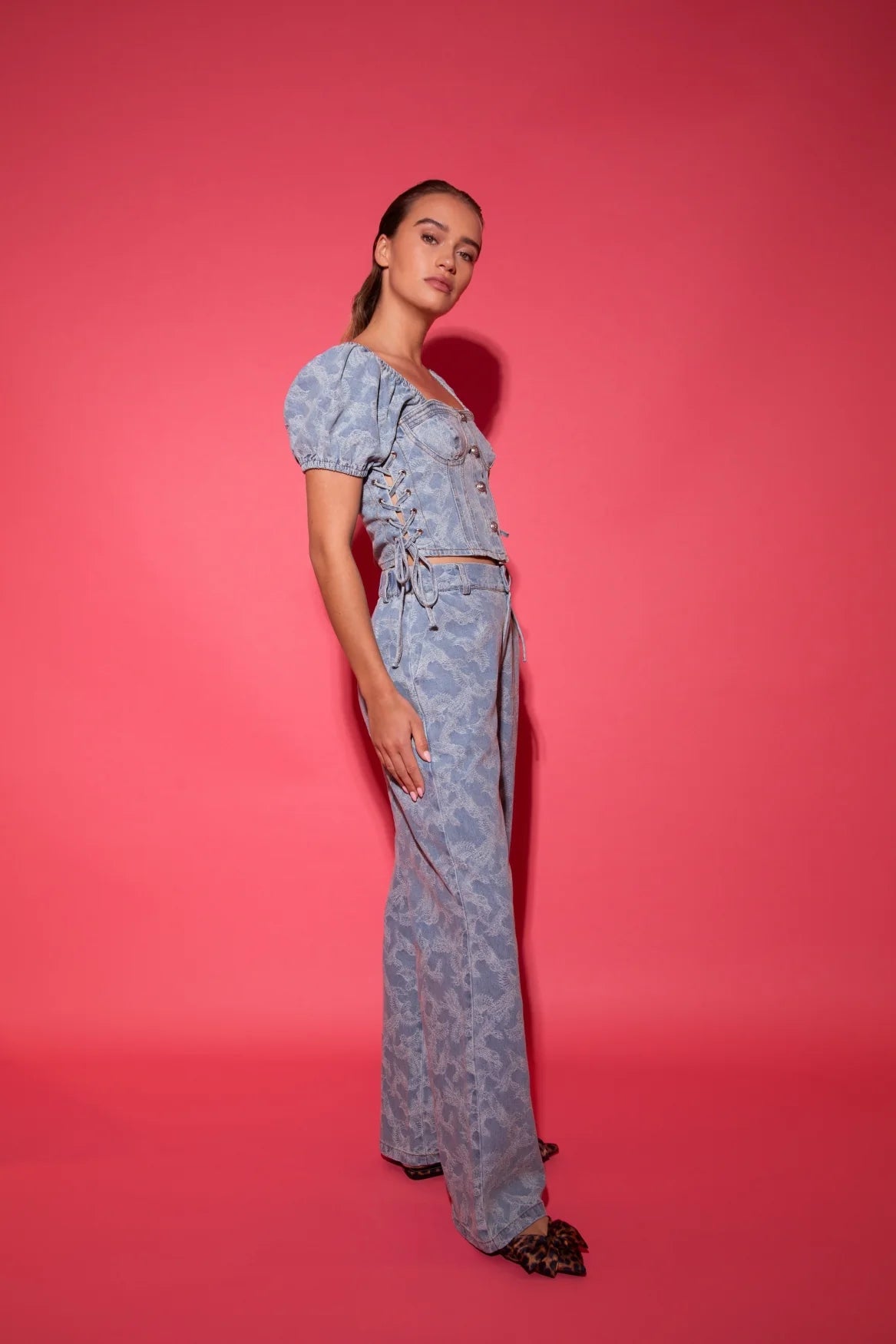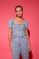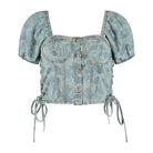 Wij zijn dol op de jeans-trend! De Jazzie top is een prachtig getailleerd, cropped topje. De mouwen hebben een elastische inzet, wat zorgt voor een mooie pofmouw-effect. Aan de zijkanten zit een gevlochten koord, waarmee je de top perfect naar je lichaam kunt vormen. Aan de voorkant sluit je de top met vier knopen. Daarnaast zijn er cups toegevoegd voor een extra mooi silhouet.