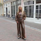 Mooie gouden broek van Studio Amaya. Combineer met de bijpassende blouse.