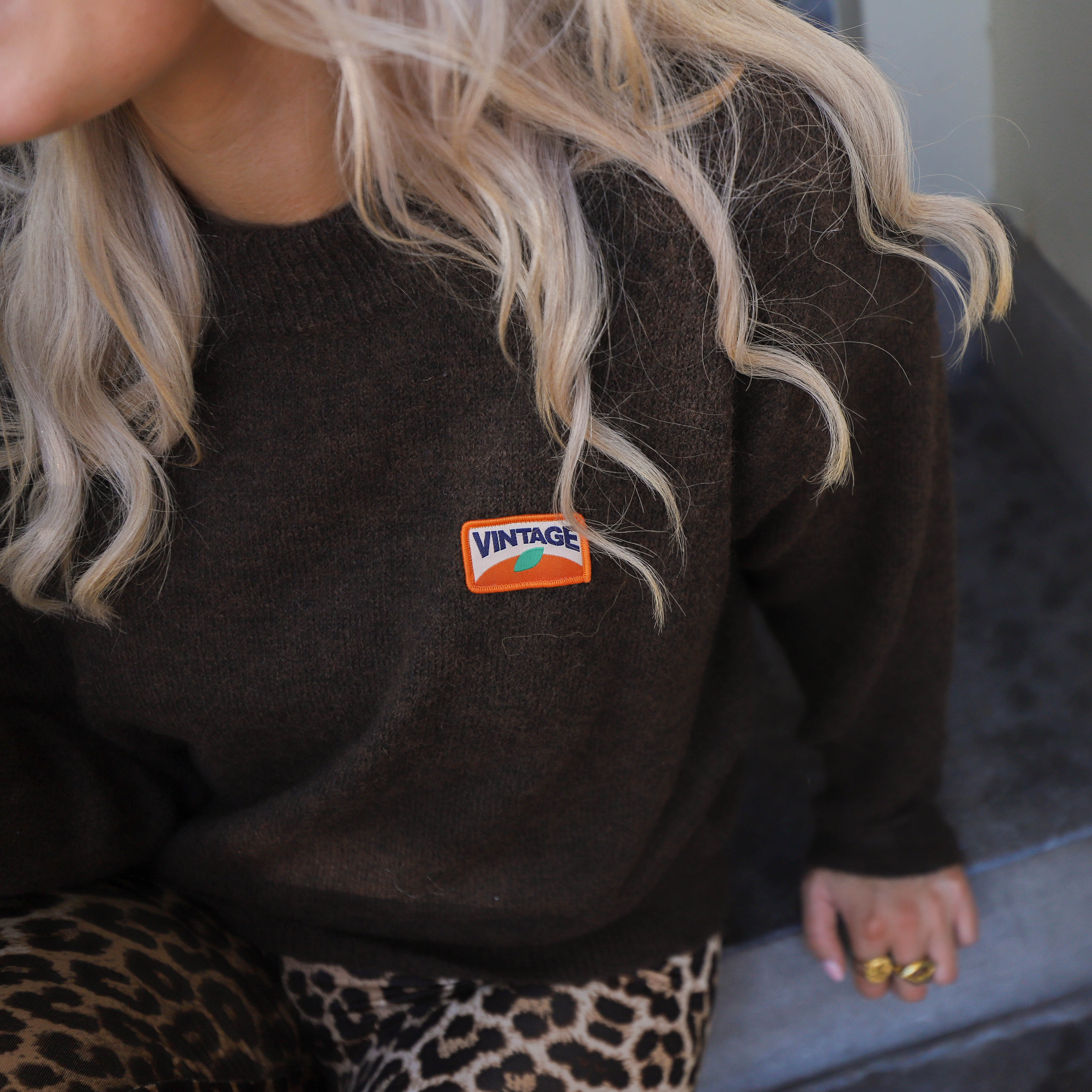 Deze zachte, bruine sweater is een comfortabele en stijlvolle keuze voor elke dag. De trui heeft een ronde hals en is voorzien van een opvallende 'VINTAGE' patch op de borst, wat zorgt voor een retro-uitstraling. De zachte stof en de lichte, harige textuur maken deze trui extra comfortabel.