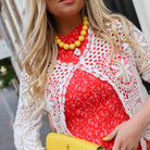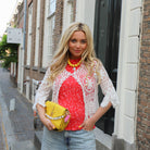 Dit charmante, gehaakte vest in een mooie off-white kleur is een echte eyecatcher! Het openwork design en de sierlijke details geven het vest een bohemian en elegante uitstraling. Perfect om over een top, jurkje of blouse te dragen.