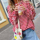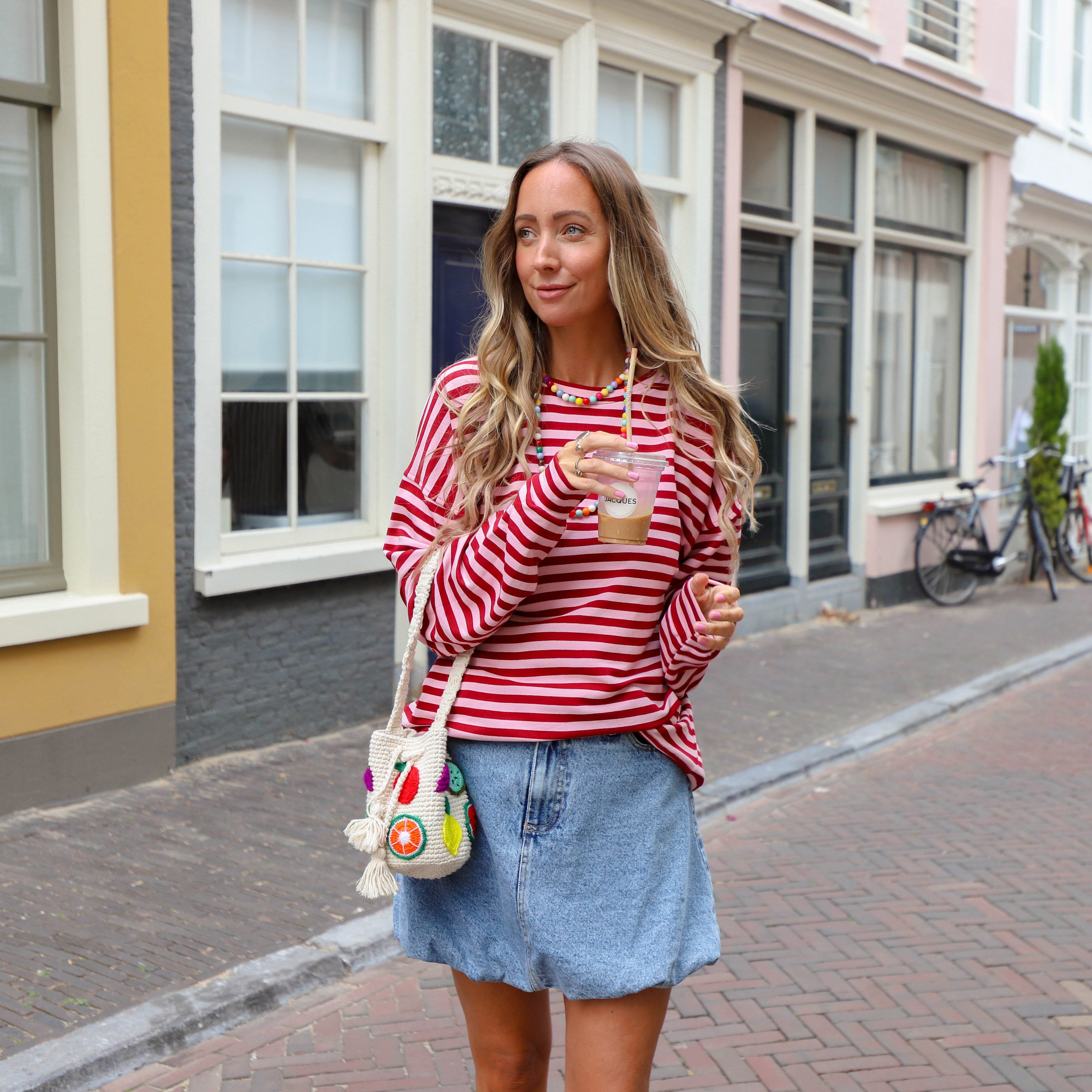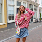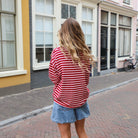 De Charlie Streep Sweater is een comfortabele en veelzijdige trui met een speels gestreept patroon in roze en burgundy. Deze sweater heeft een rechte, oversized pasvorm en een ronde hals. De lange mouwen en zachte stof geven het item een casual uitstraling, terwijl de fijne strepen zorgen voor een subtiele en vrolijke look.